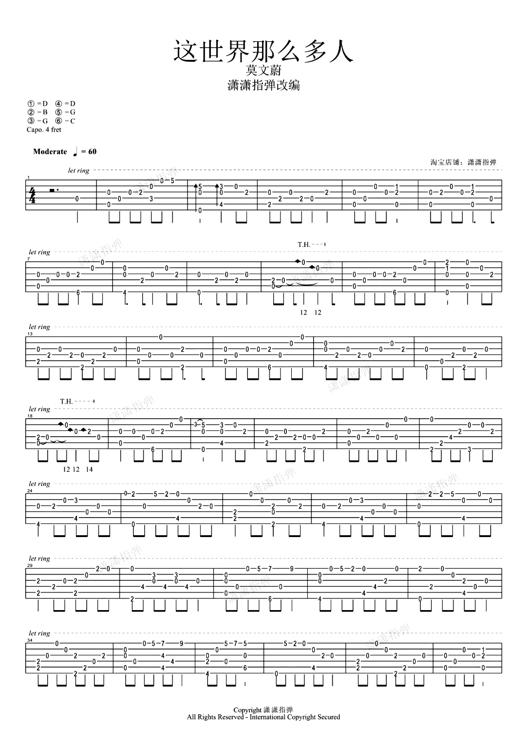 这世界那么多人指弹谱_莫文蔚_指弹独奏谱这世界那么多人吉他指弹谱,莫文蔚的一首热门歌曲改编,调弦1-6:DBGDGC,变调夹夹4品,吉他独奏谱共两张图片谱例。