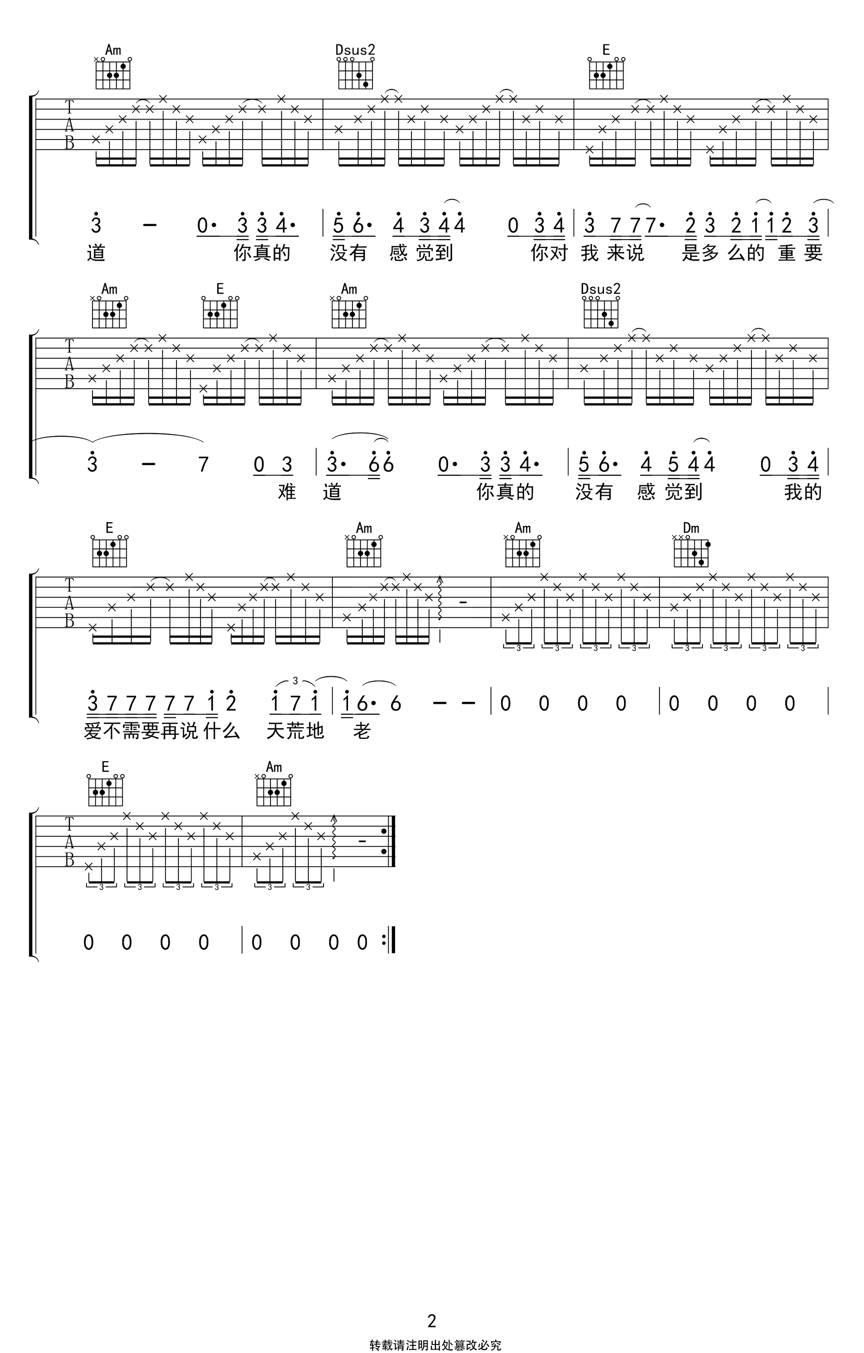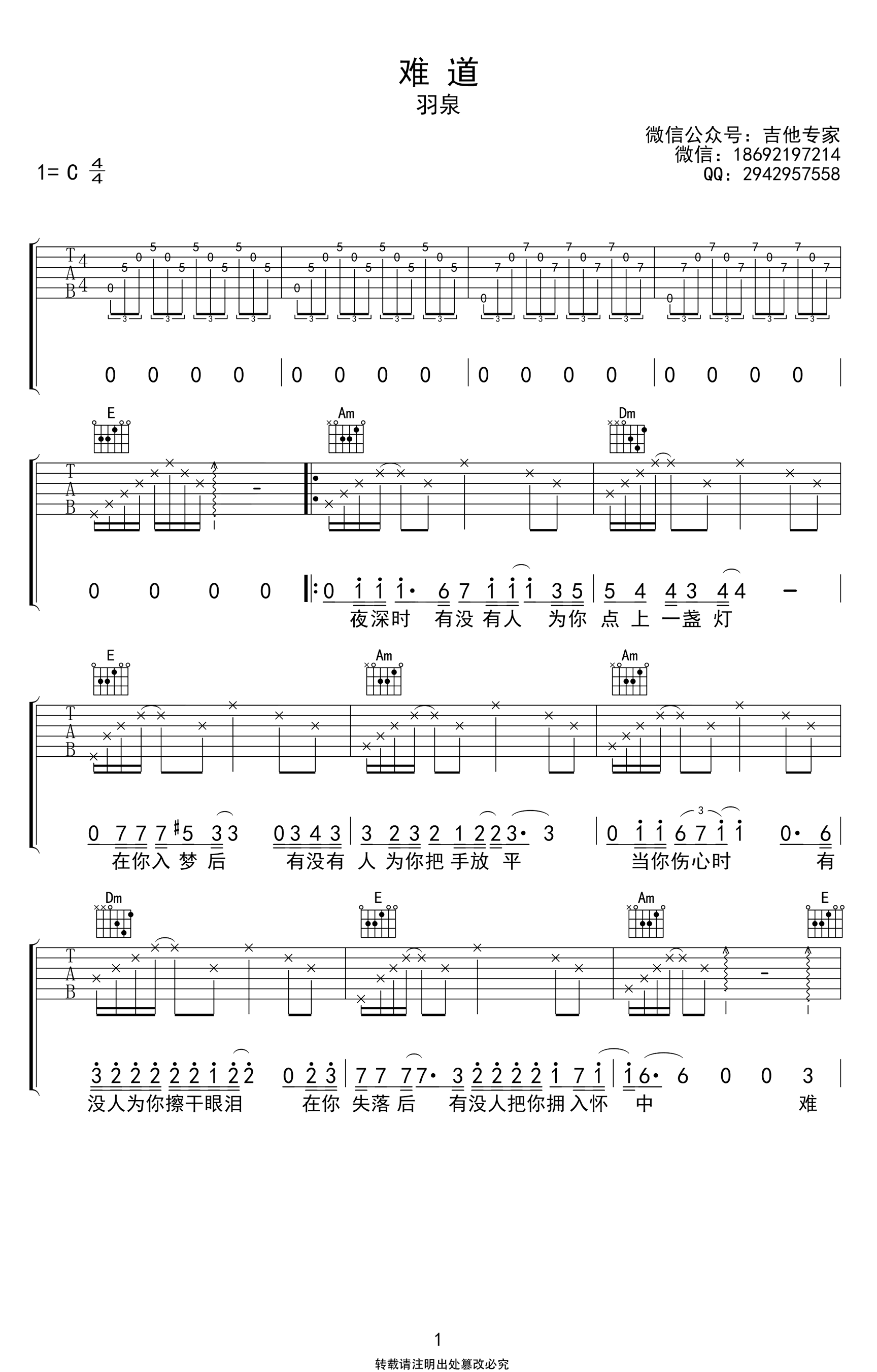 难道吉他谱_C调_羽泉_高清弹唱谱_《难道》六线谱
