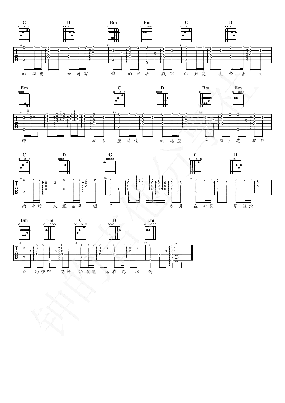 - 王大文《酸雨》吉他谱_吉他弹唱谱_YYZJ编配