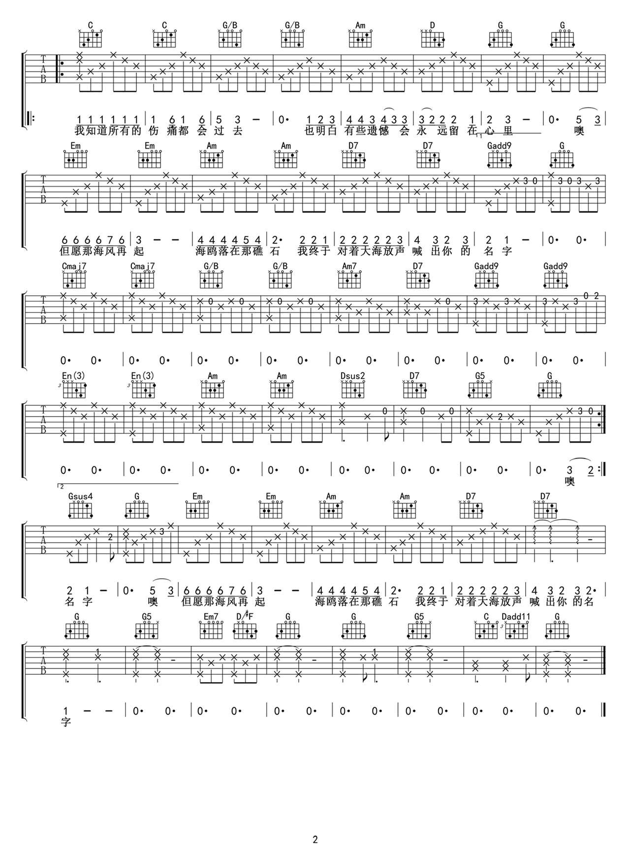 海鸥吉他谱_逃跑计划乐队_G调指法_弹唱六线谱