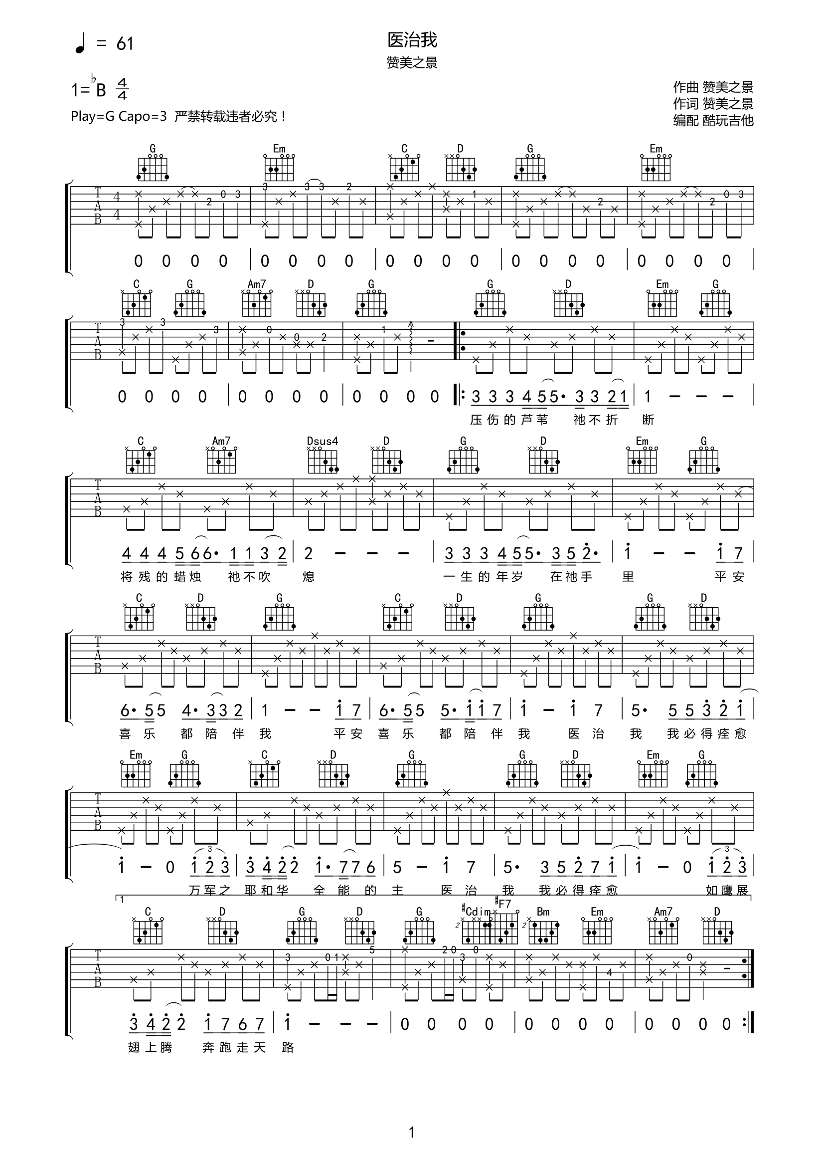 赞美之景《医治我》吉他谱-G调弹唱谱高清