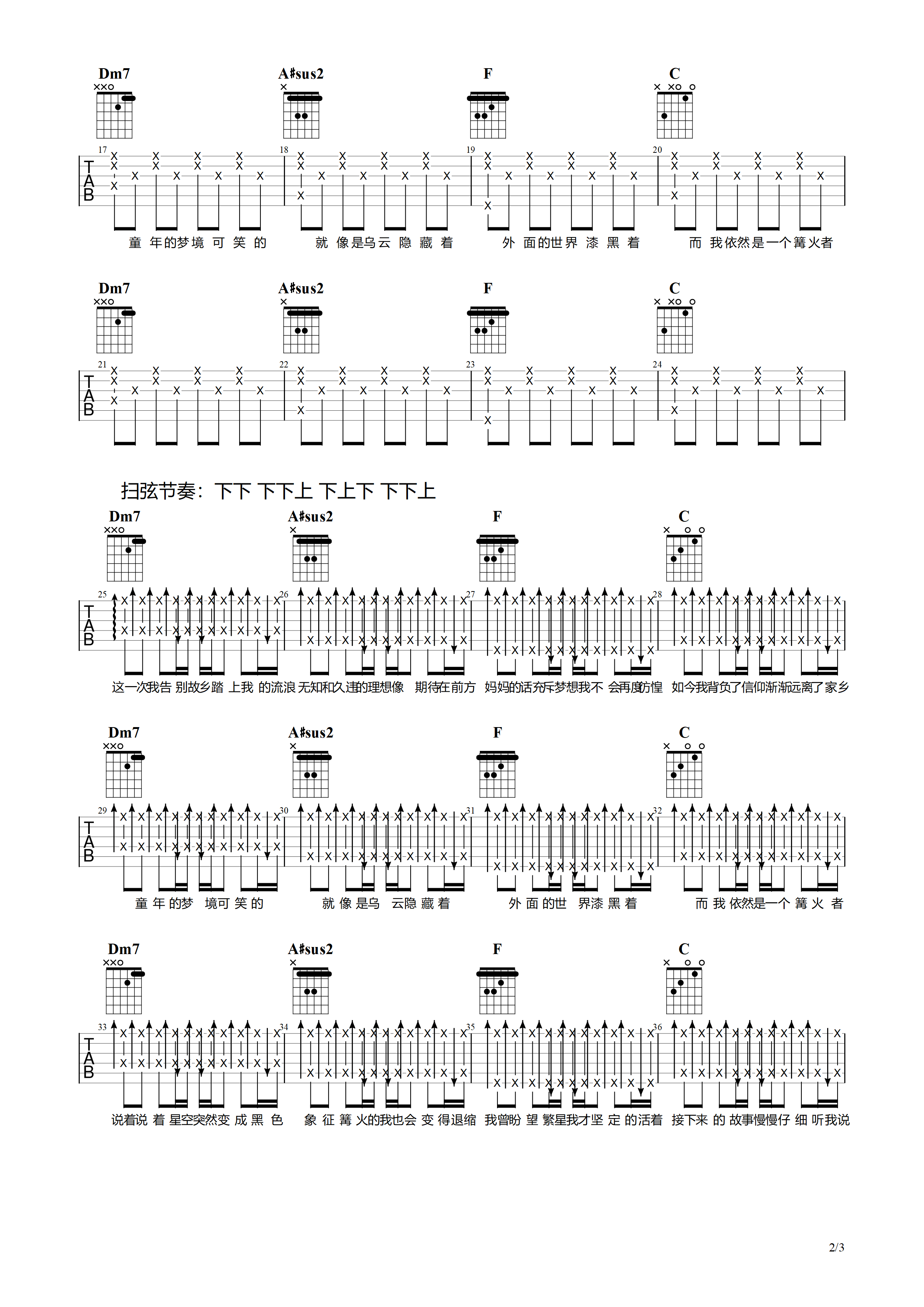 - 王大文《酸雨》吉他谱_吉他弹唱谱_YYZJ编配