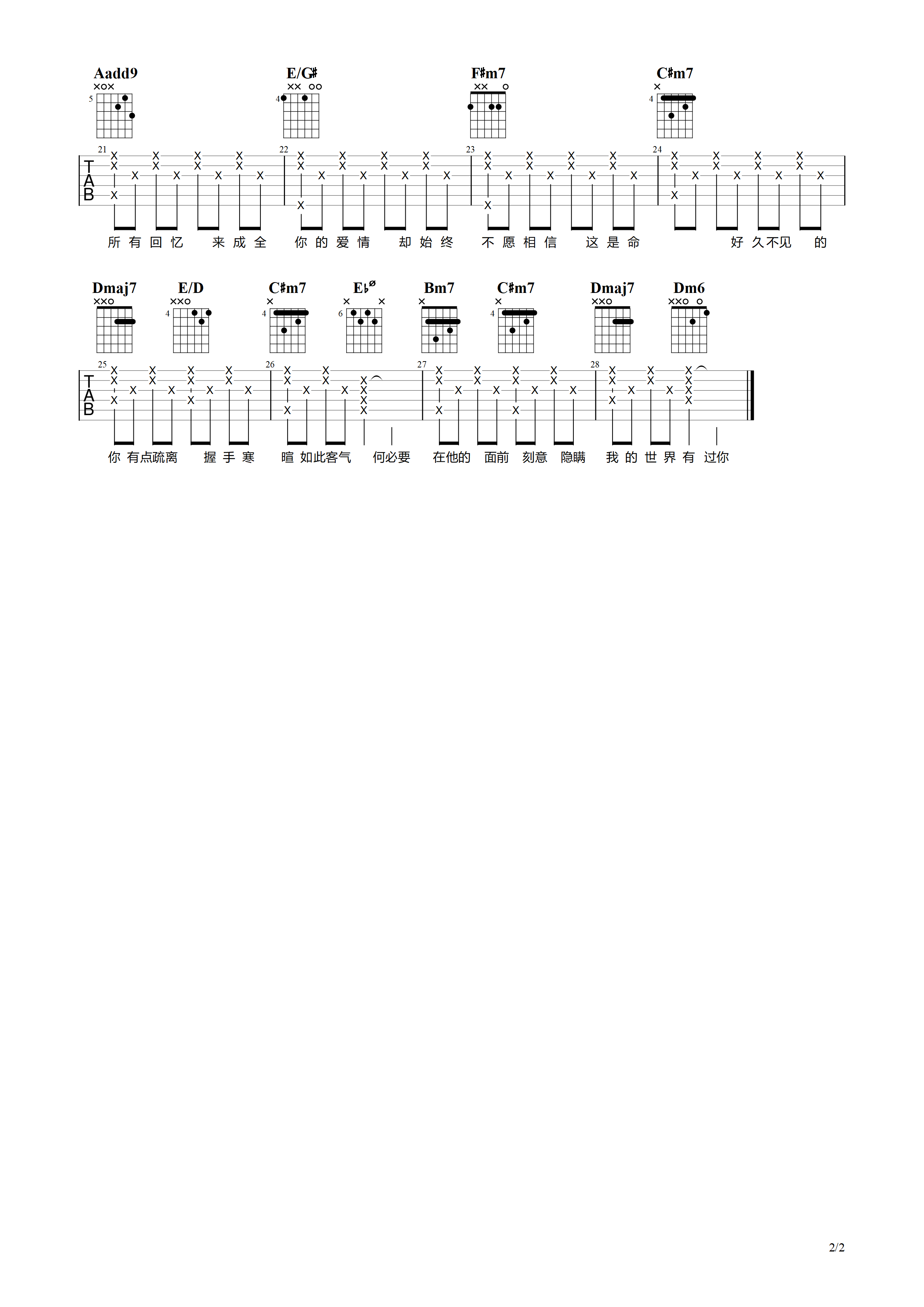 - 王大文《酸雨》吉他谱_吉他弹唱谱_YYZJ编配