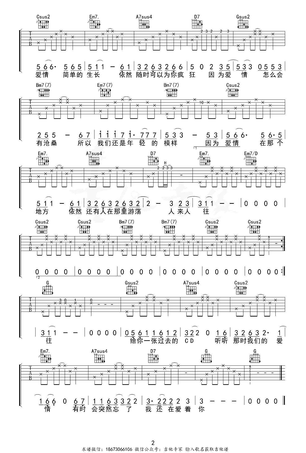 因为爱情吉他谱,陈奕迅/王菲的一首经典男女对唱情歌,电影《将爱情进行到底》插曲。《因为爱情》吉他弹唱谱,原调F,选用G调指法编配,降全音调弦。完整版共两张图片六线谱,感谢吉他专家分享出品,酷玩吉他上传。 爱情是一种永恒的信仰,承载着我们内心最真挚的渴望;岁月流转,风霜雨雪,爱情依旧闪耀着耀眼的光芒。让我们用爱去温暖身旁的人,在人来人往的路口相遇,携手共赴生命的旅途。