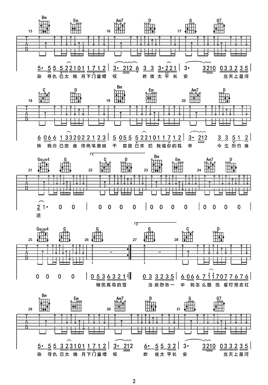 天龙八部之宿敌吉他谱_许嵩_C调弹唱六线谱