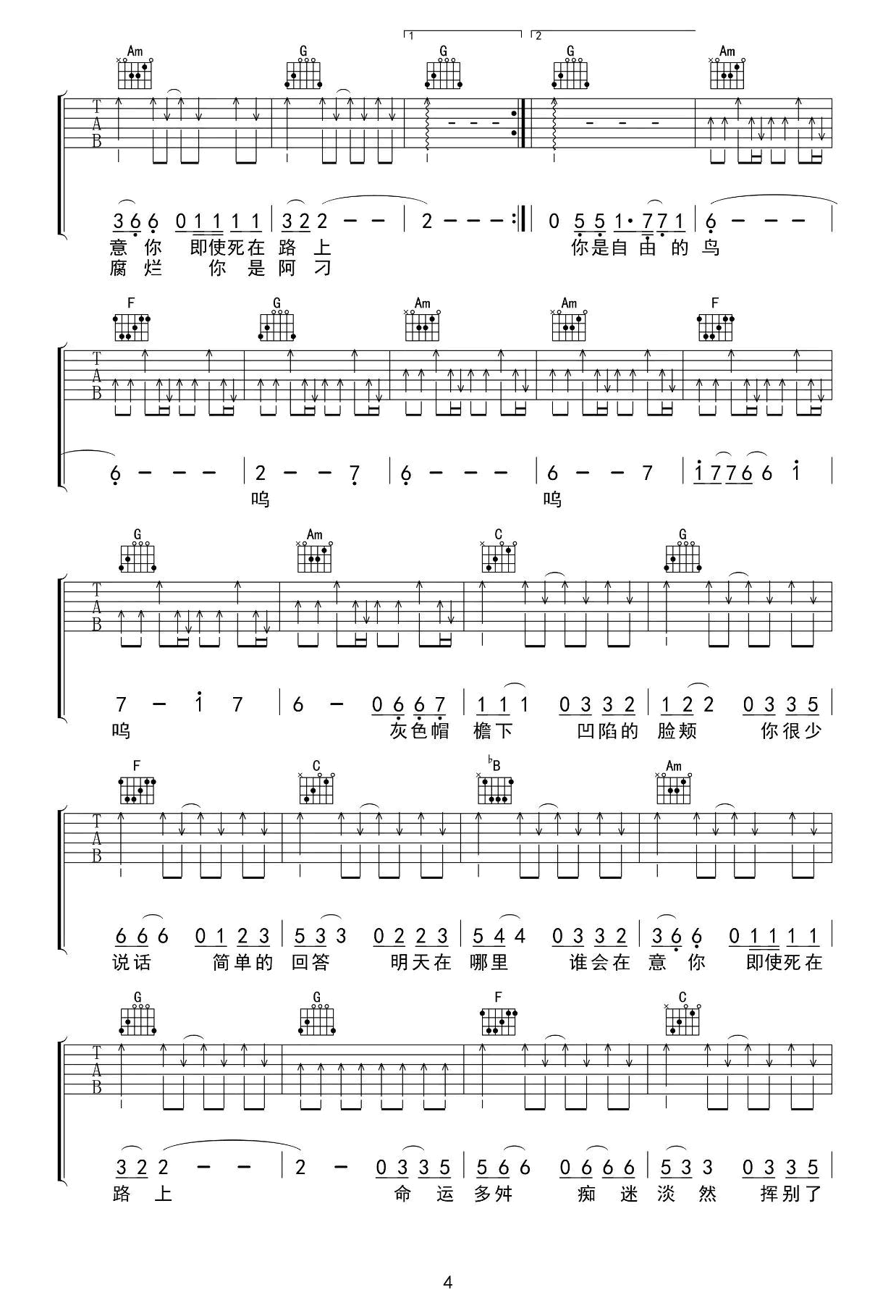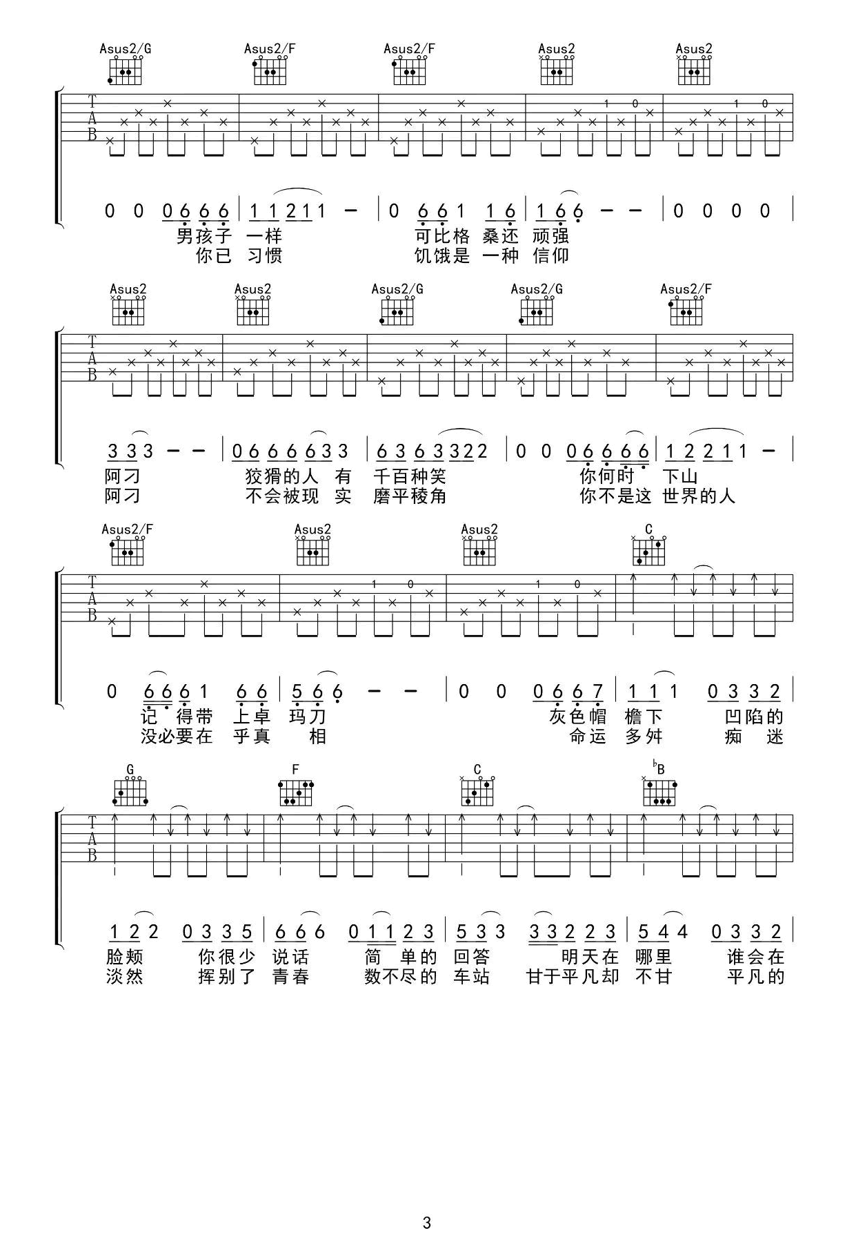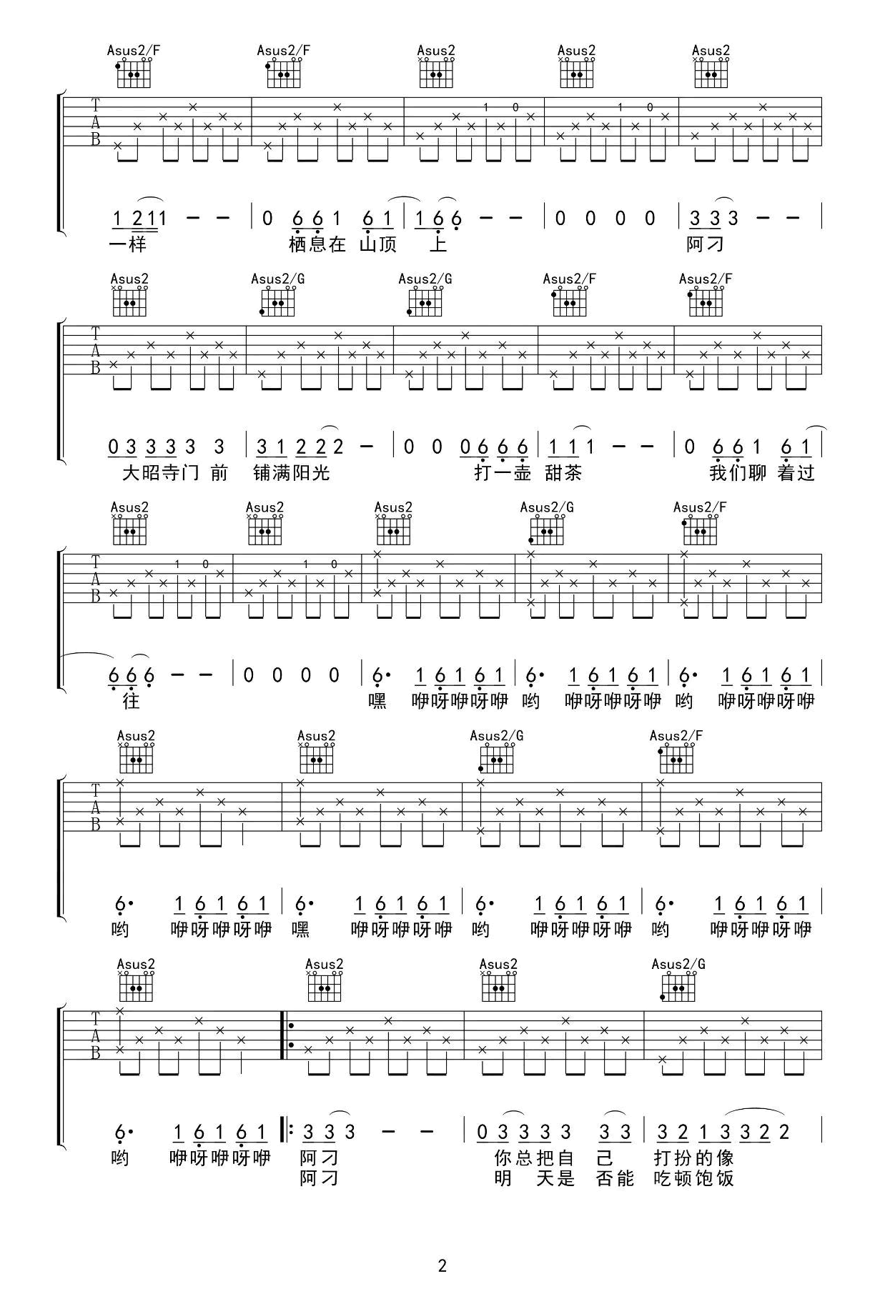 - 赵雷《阿刁》吉他谱_吉他弹唱谱_小磊吉他编配
