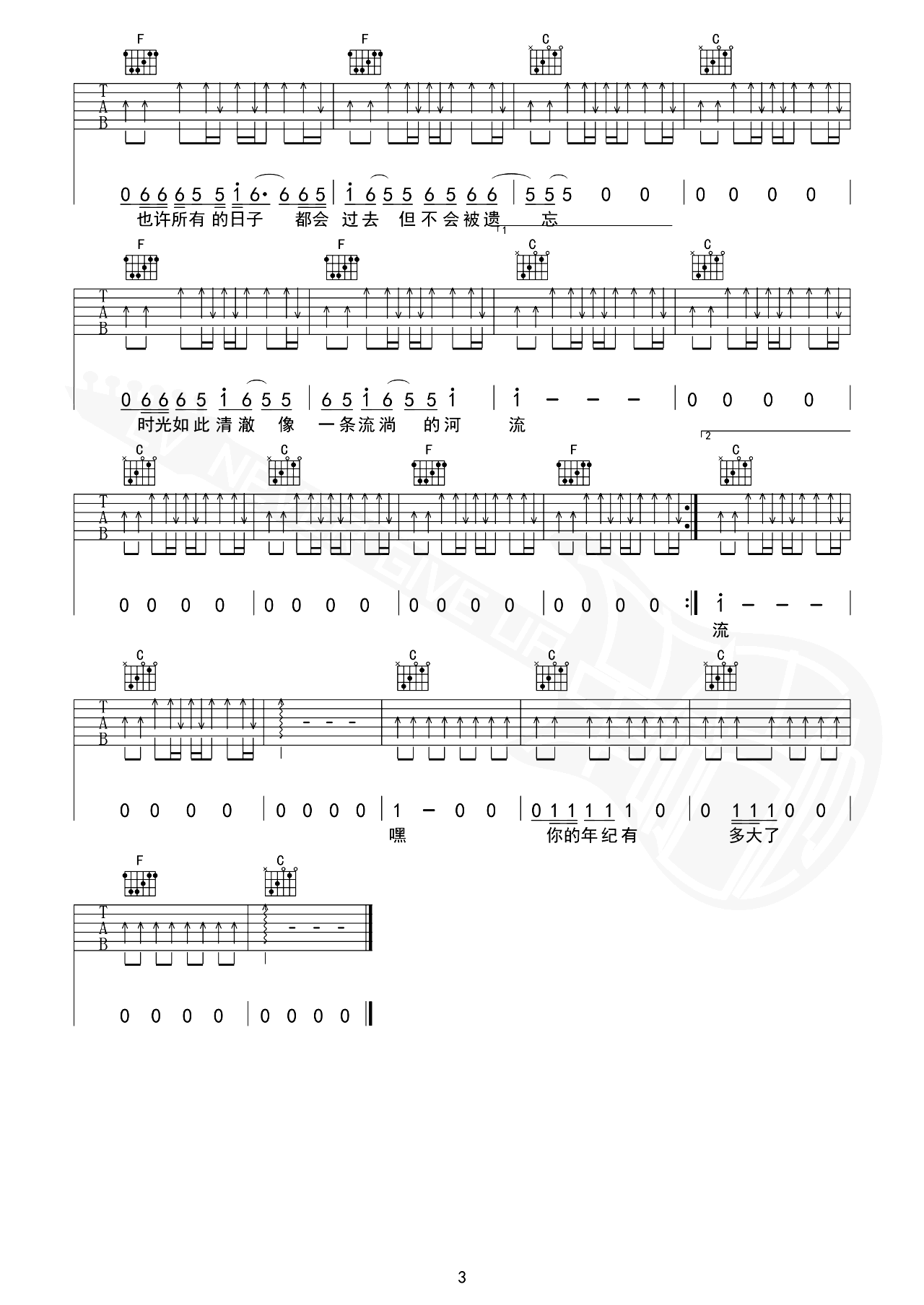 河流吉他谱_川川_C调弹唱谱_完整版六线谱