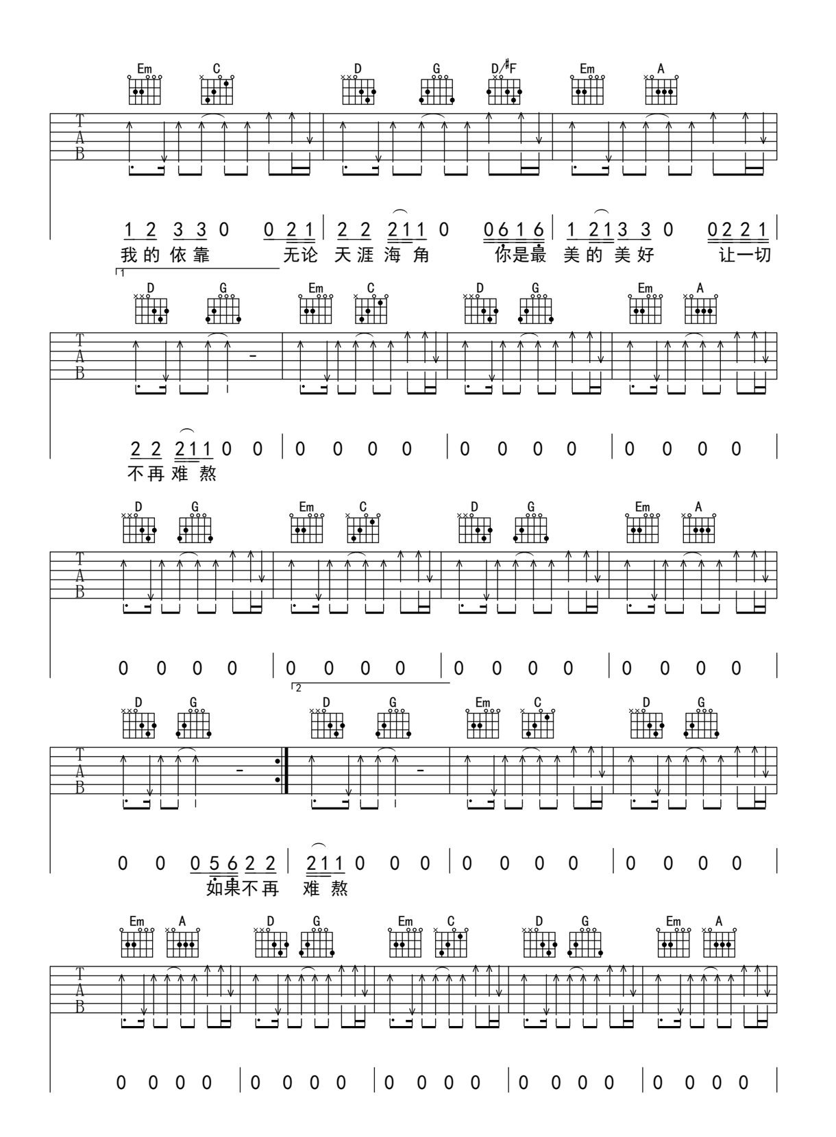 - 田一龙《一定要爱你》吉他谱_吉他弹唱谱