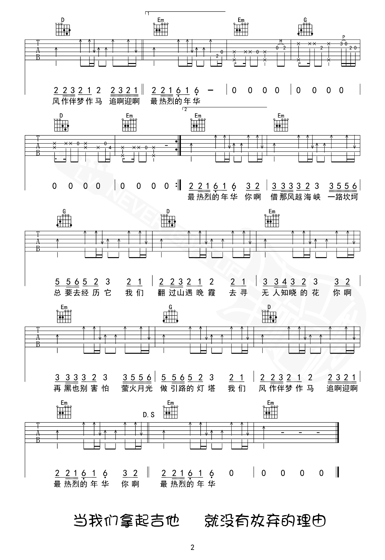 年少的你啊吉他谱,浩然H.R一首音乐榜热门歌曲,越过荒野和山坡,追逐少年的梦想。《年少的你啊》吉他弹唱谱,原调降A,采用G调指法编配,4/4拍节奏,变调夹夹第一品,六线谱共两张图片谱例,感谢革命吉他出品,酷玩吉他更新分享。 季节总要走向金黄,少年也终将成为宝藏。亲爱的,即使黑夜笼罩,也无需惧怕。萤火与月光成为我们前进的灯塔,风儿伴随,梦想驰骋。追逐着,迎接最热情奔放的年华。