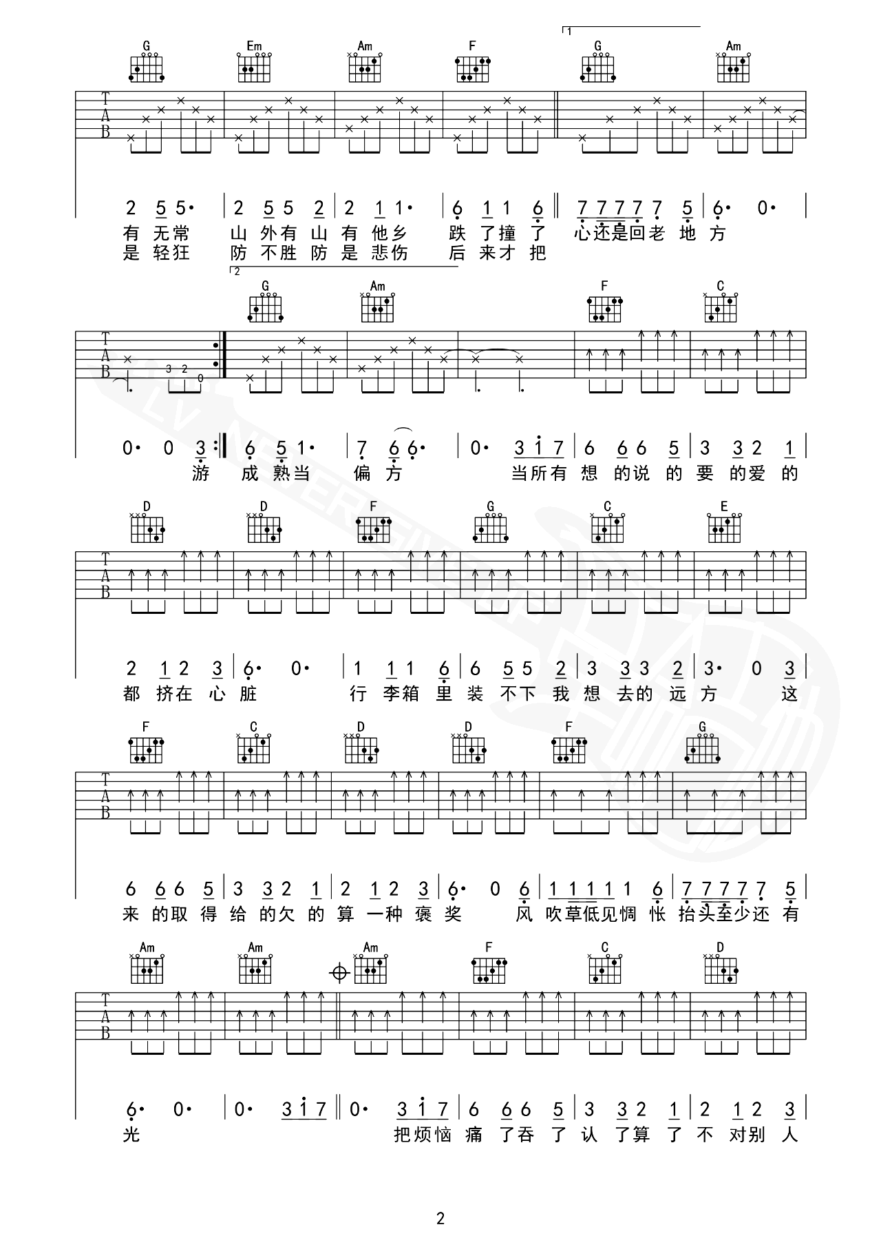 - 毛不易《一程山路》吉他谱_吉他弹唱谱_唯音悦编配