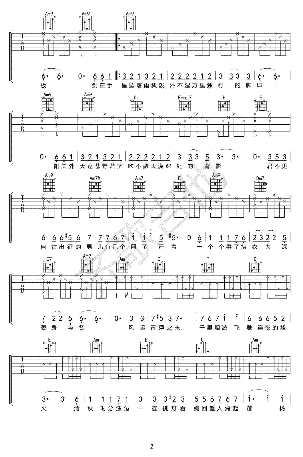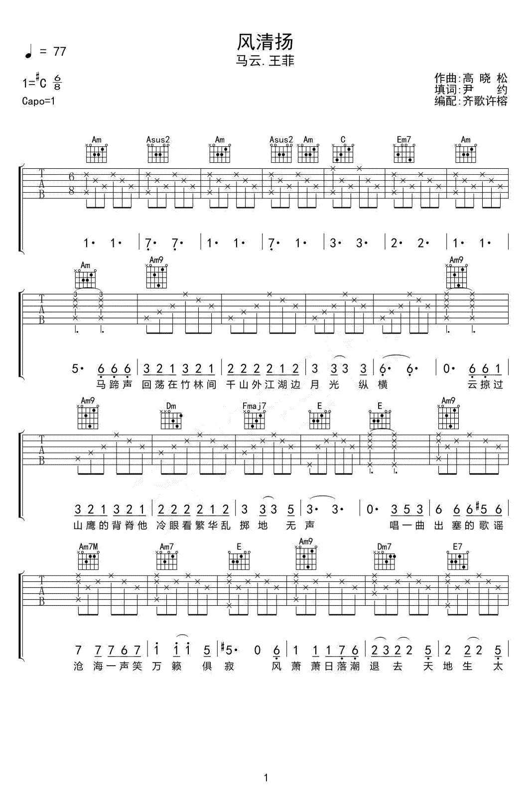 王菲/马云《风清扬》吉他谱_吉他弹唱谱_齐歌许榕编配