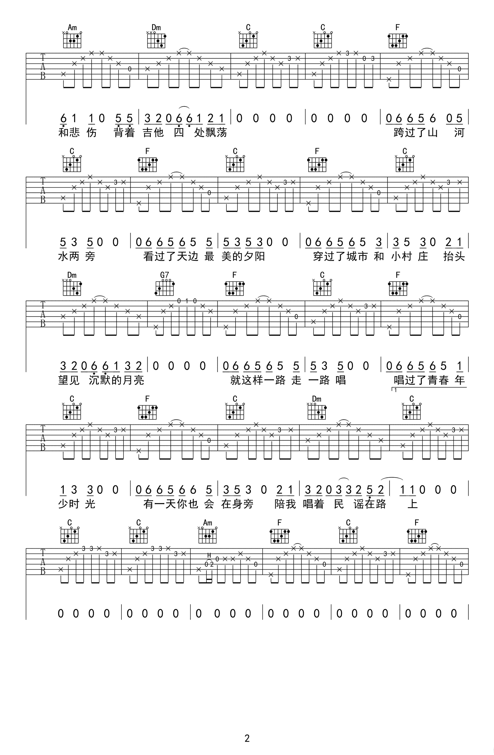 前冲《民谣在路上》吉他谱_吉他弹唱谱_巍小琪编配