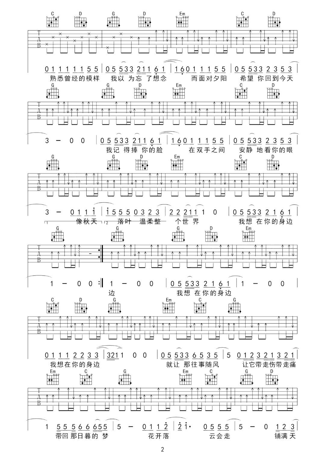 盛哲《在你的身边》吉他谱_吉他弹唱谱_革命吉他编配