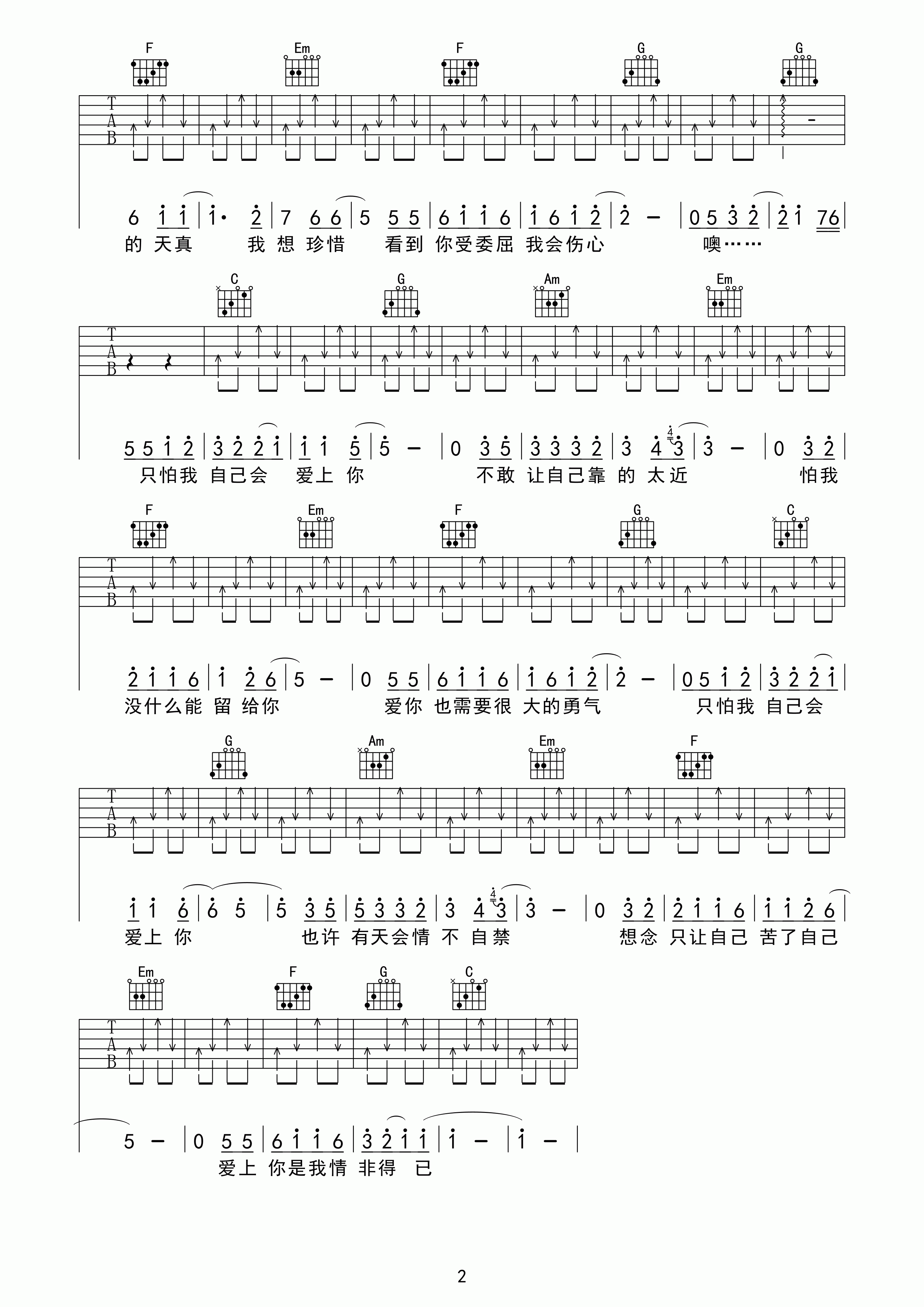 庾澄庆《情非得已》吉他谱,共有2张高清图谱,免翻页排版设计。