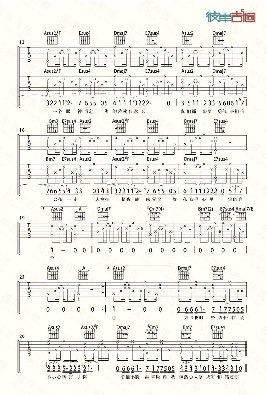 梁静茹《勇气》吉他谱_吉他弹唱谱_彼岸吉他编配