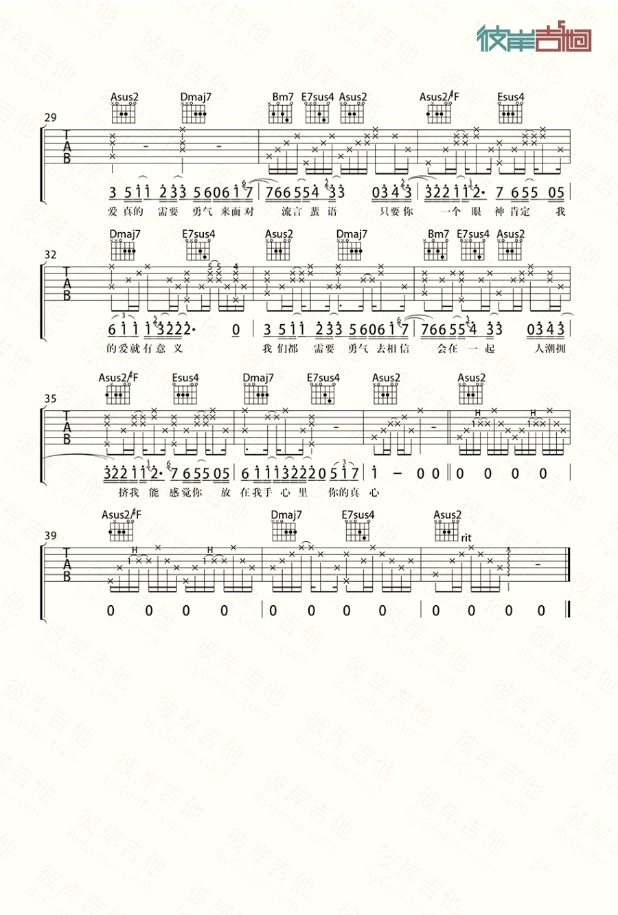 梁静茹《勇气》吉他谱,彼岸吉他编配出品,共有3张高清图谱。