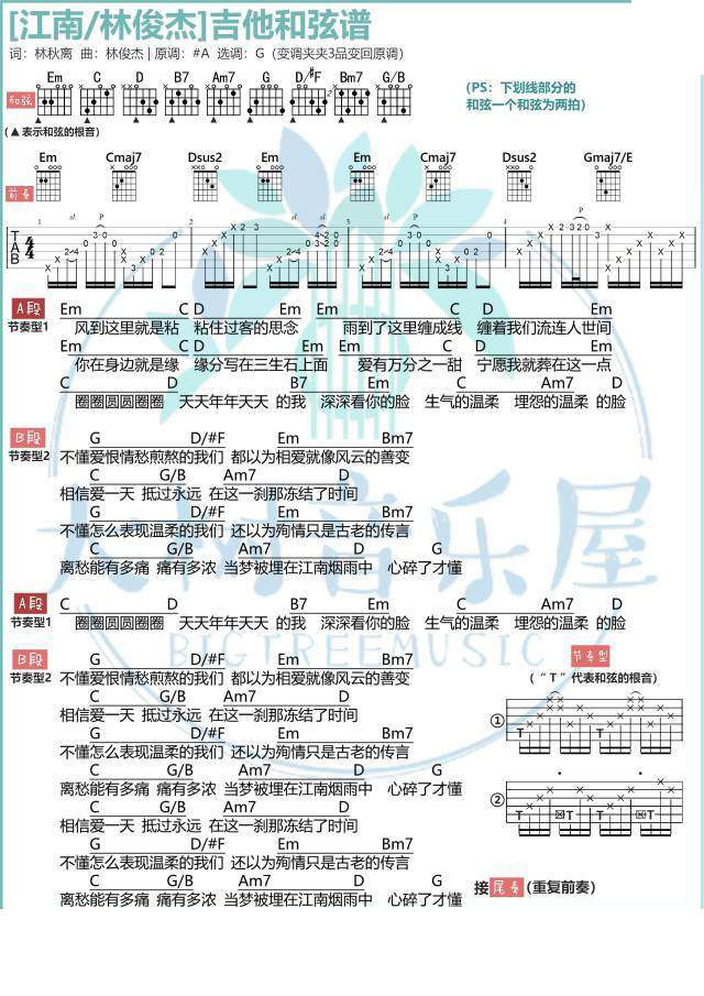 林俊杰《江南》吉他谱_吉他弹唱谱_大树音乐屋编配