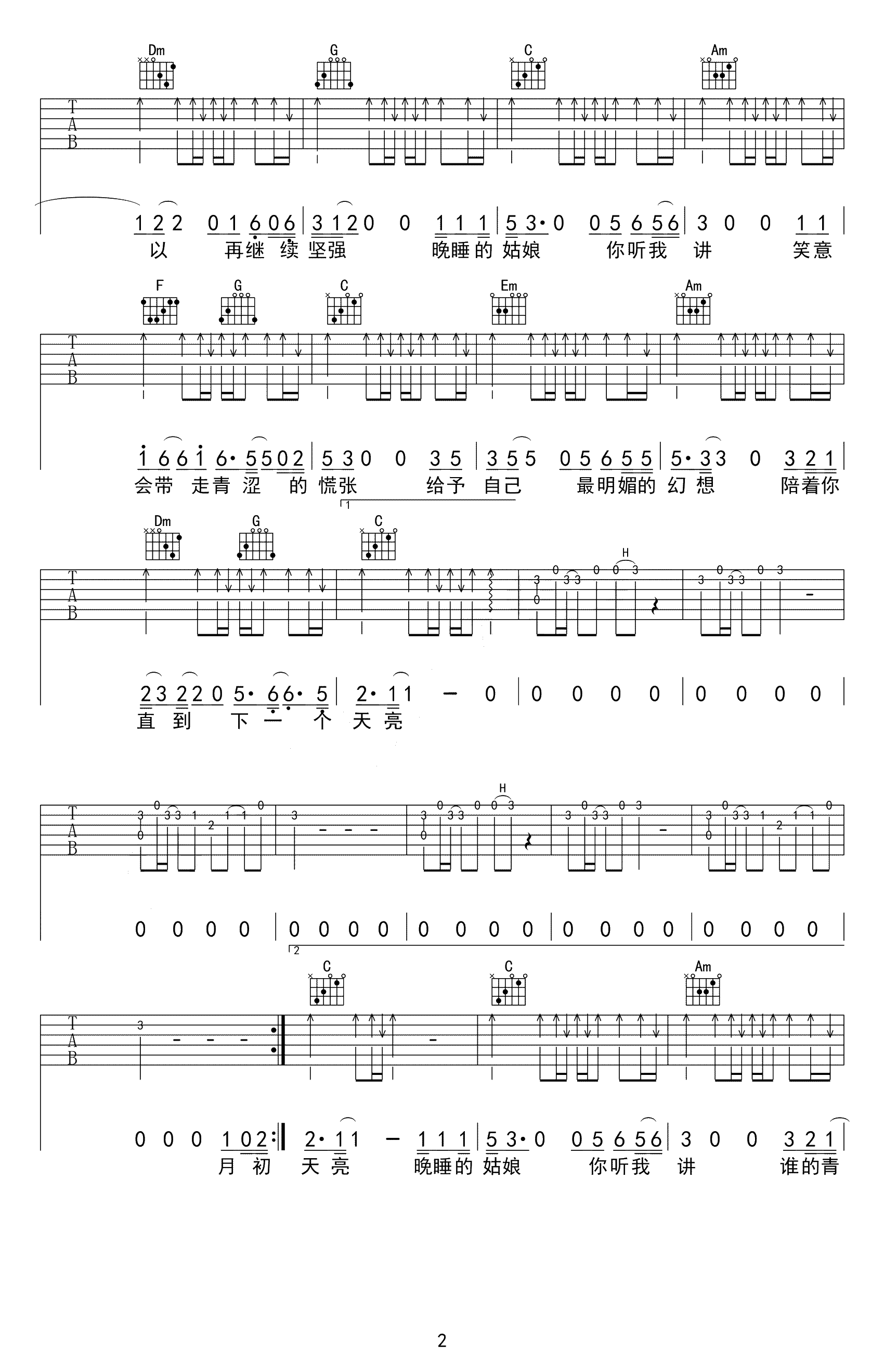 周新诚《晚睡的姑娘》吉他谱_吉他弹唱谱_巍小琪编配