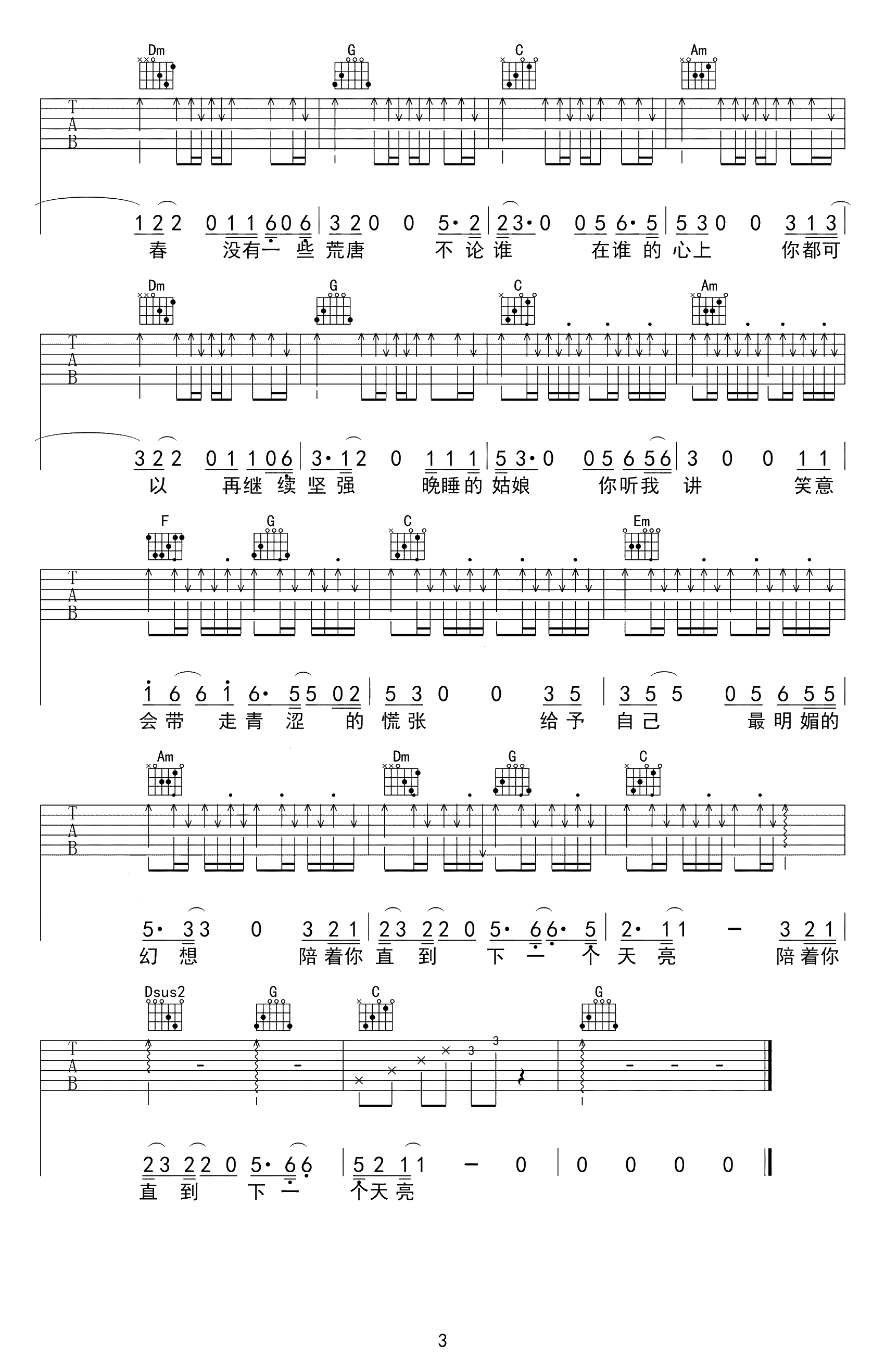 周新诚《晚睡的姑娘》吉他谱,变调夹夹三品,C调指法编配,一首民谣歌曲,晚睡的姑娘,说的是你嘛还没睡吗?来听一首民谣吧,陪着你晚睡,陪着你到天亮,我知道你在等着那句晚安,等着那个人,可能只有你那个心上人才能治好晚睡的病吧,我代他对你说一句,晚安,姑娘。