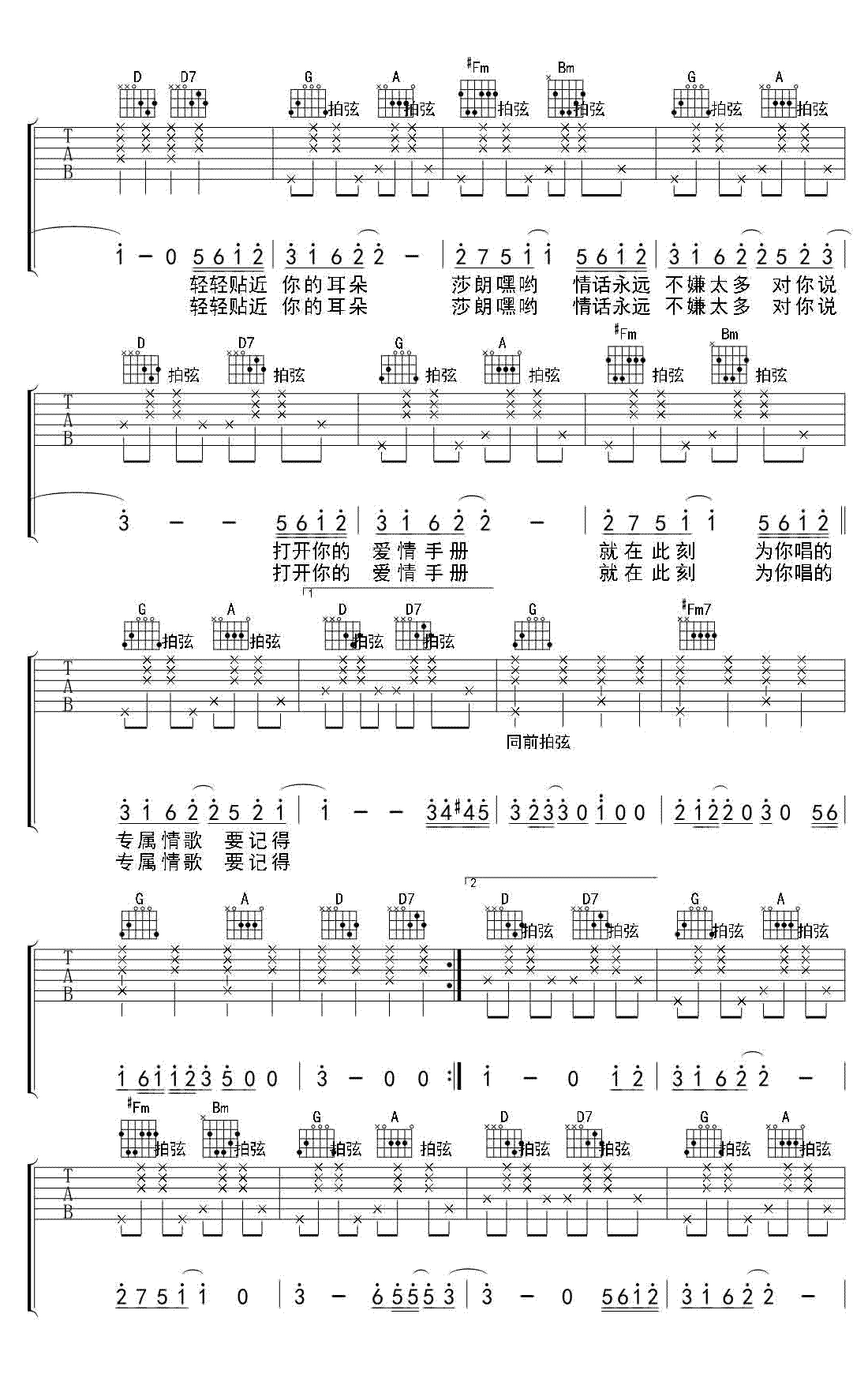 贺子铃《123我爱你》吉他谱_吉他弹唱谱_新乐尘符编配