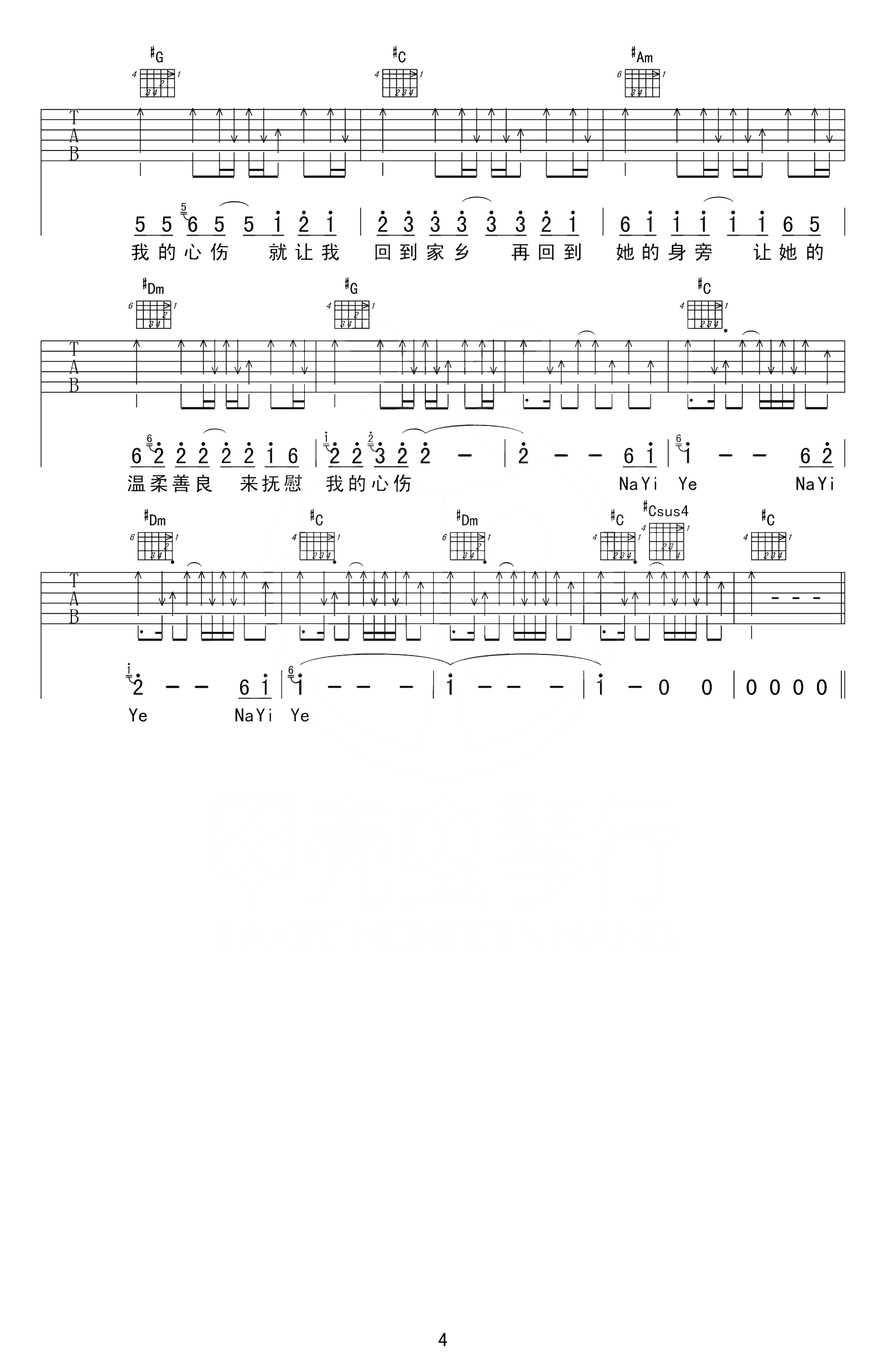 水木年华《在他乡》吉他谱_吉他弹唱谱_甲壳虫琴行--赵兴华编配