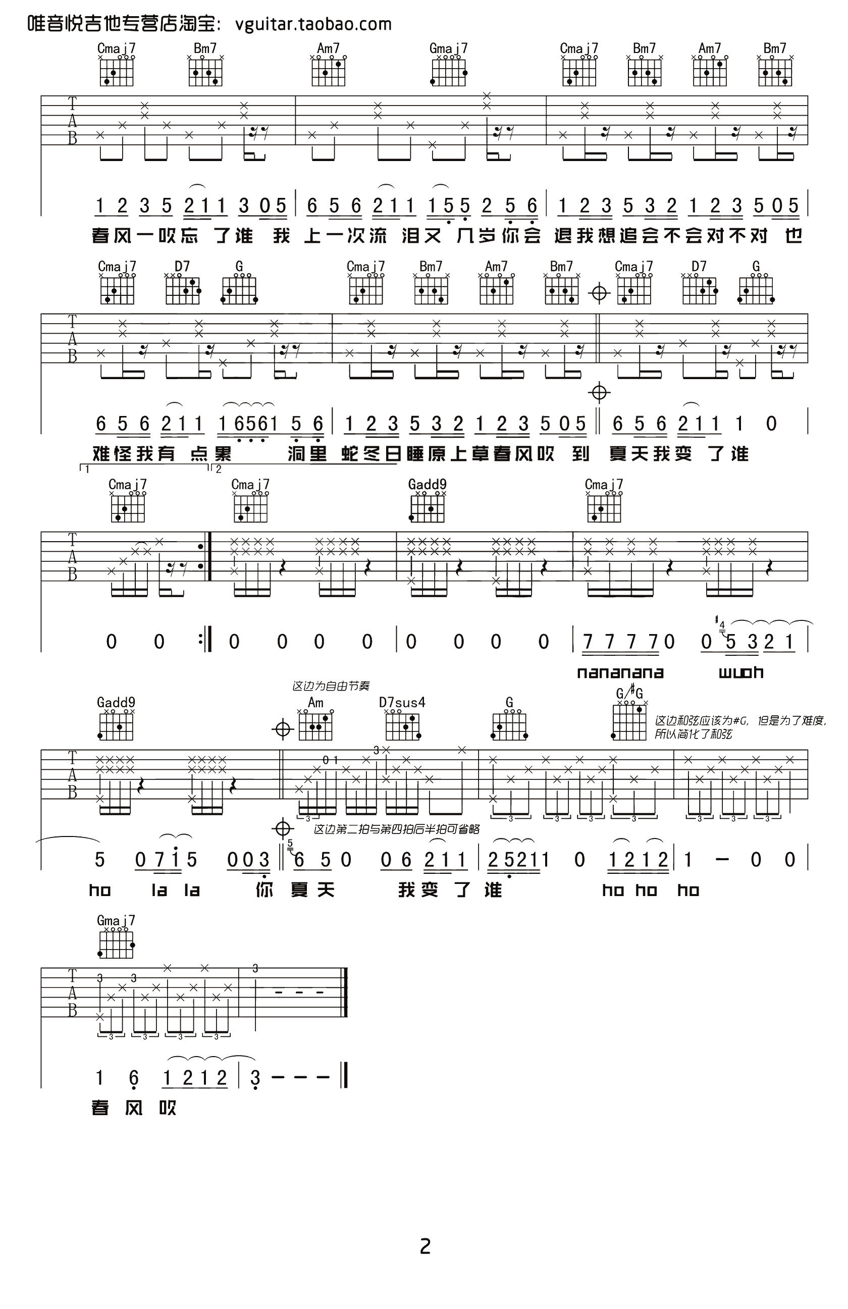 方大同《春风吹》吉他谱_吉他弹唱谱_唯音悦编配