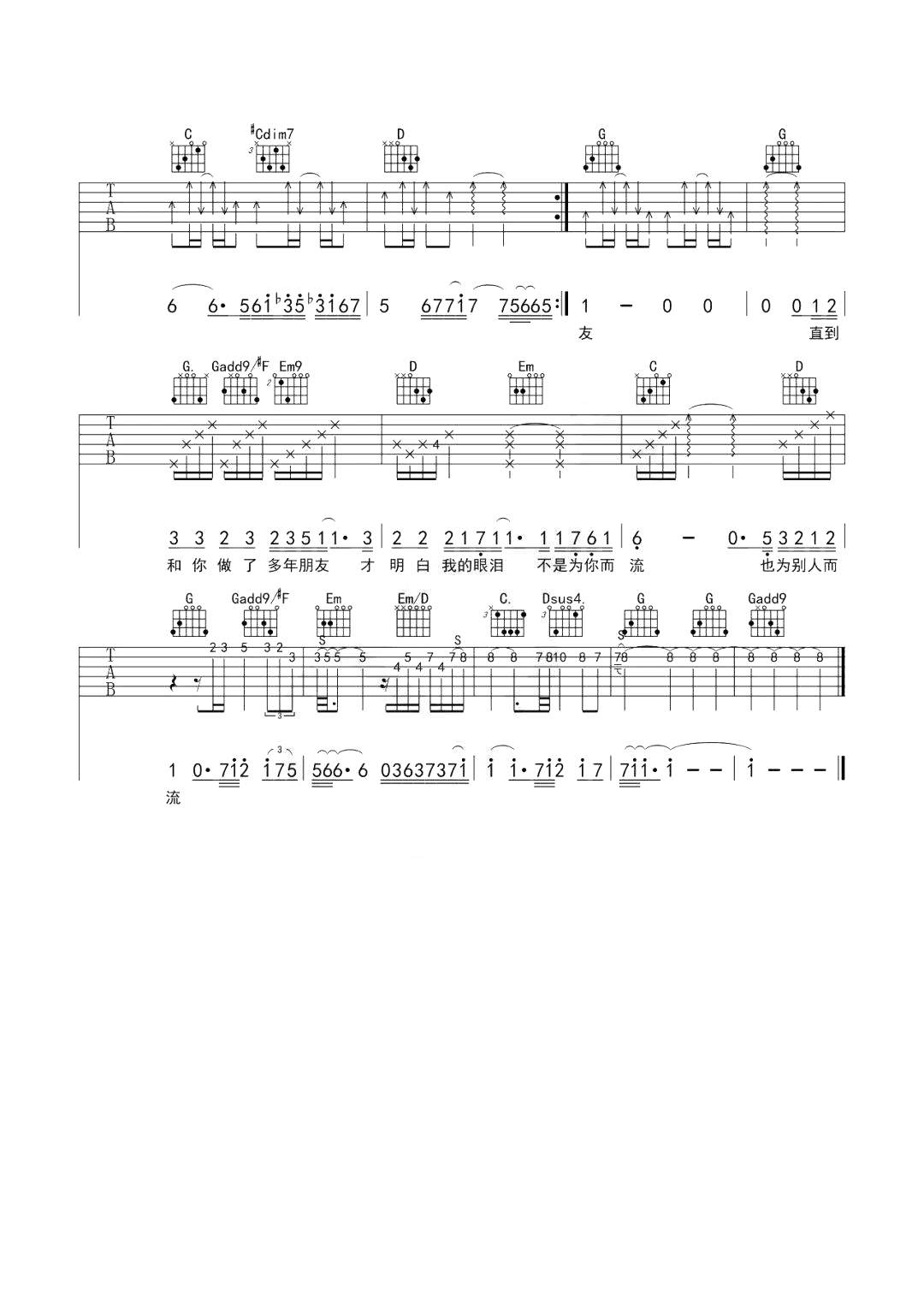 - 陈奕迅《陪你度过漫长岁月》吉他谱_吉他弹唱谱_樱之道音乐工作室编配