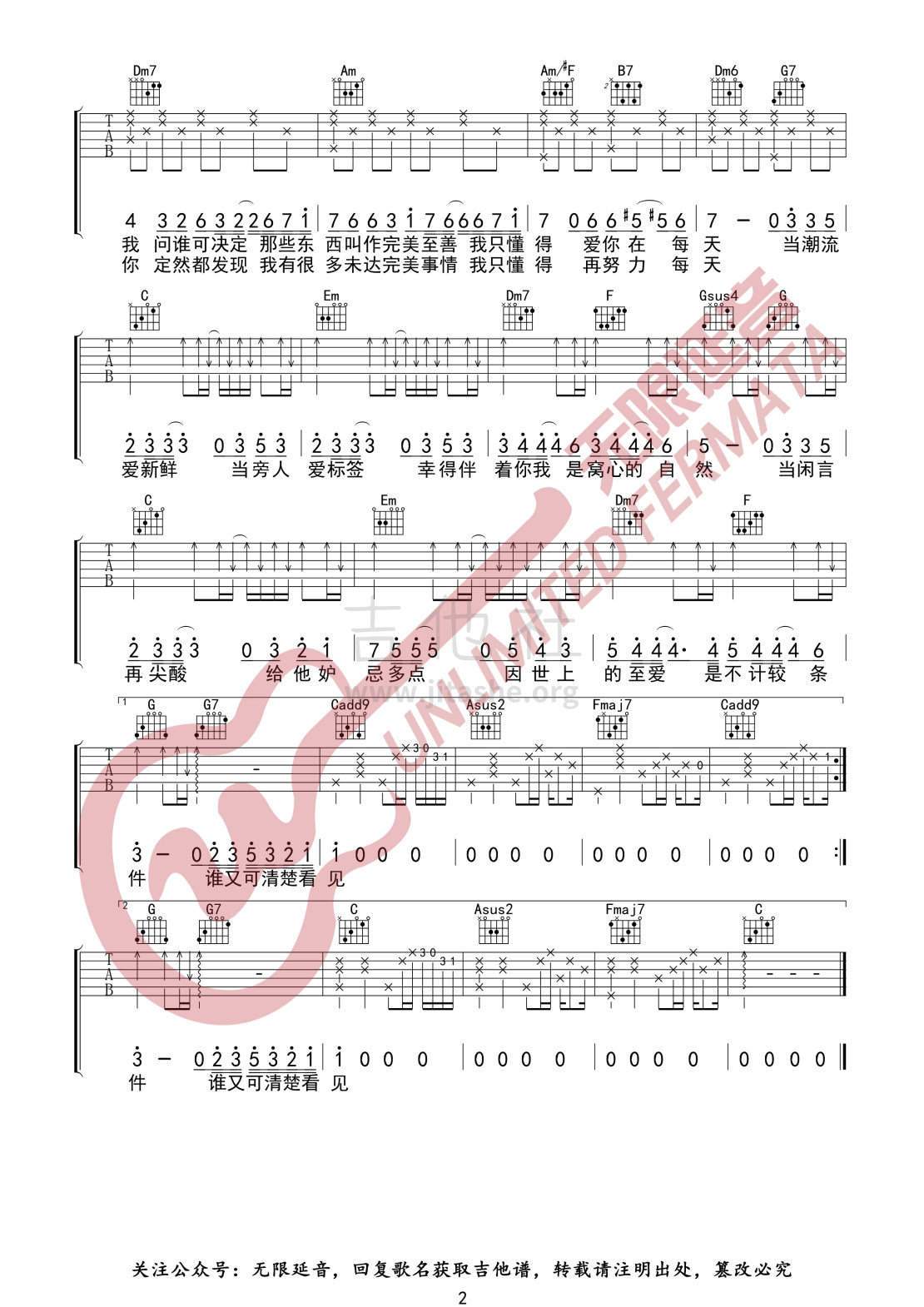 陈奕迅《无条件》吉他谱_吉他弹唱谱_无限延音编配