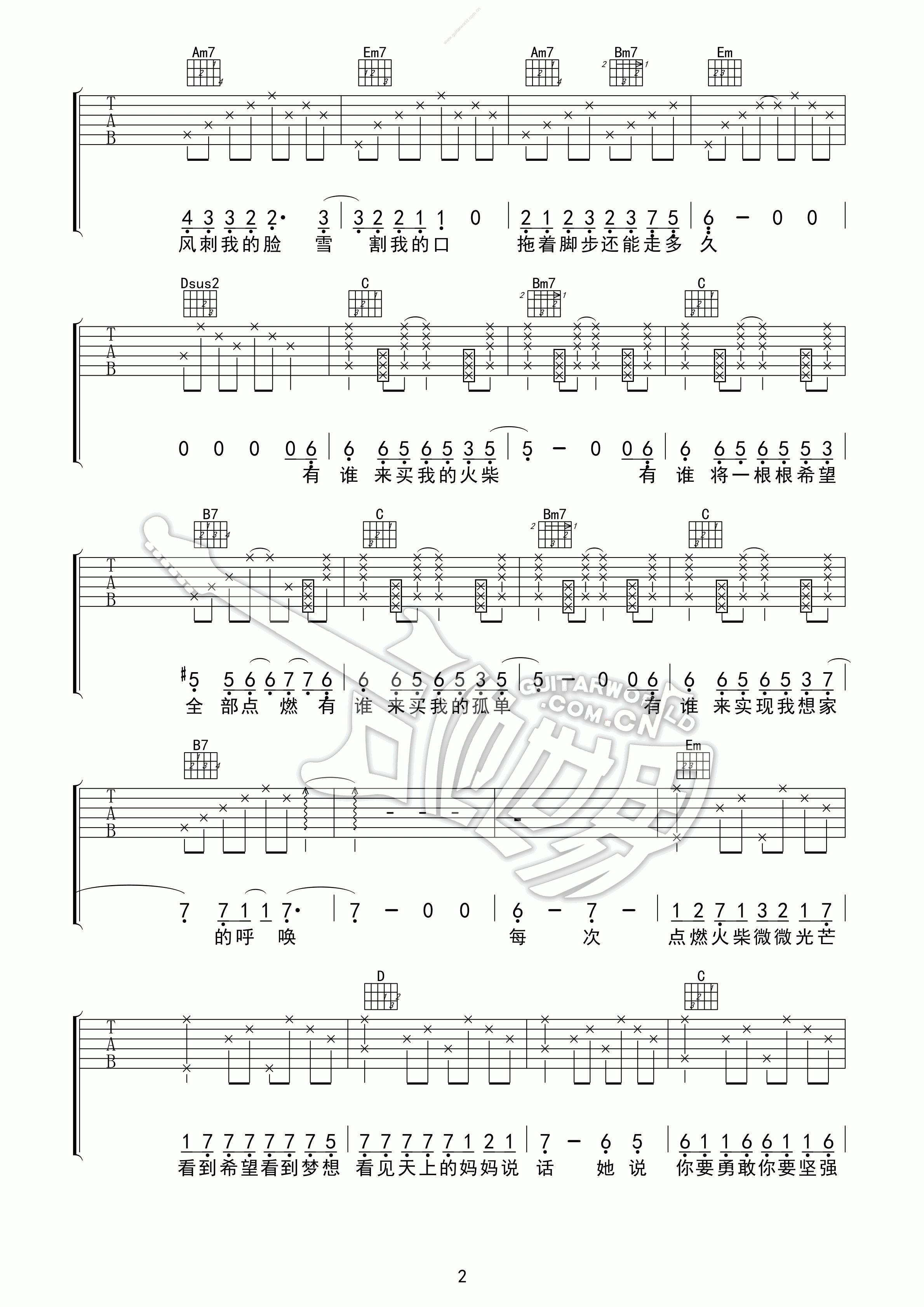 齐秦《火柴天堂》吉他谱_吉他弹唱谱_隋毅飛扬编配