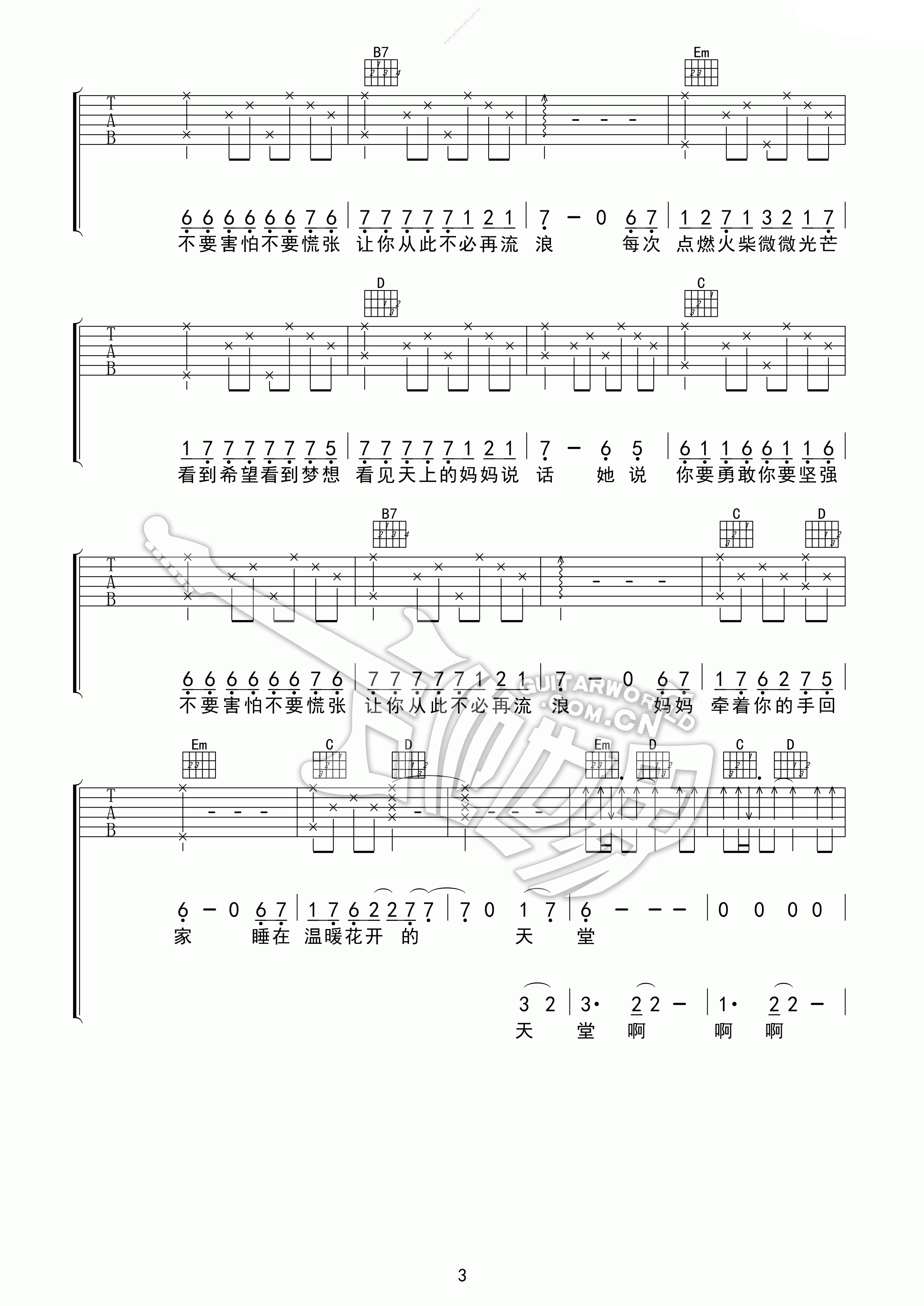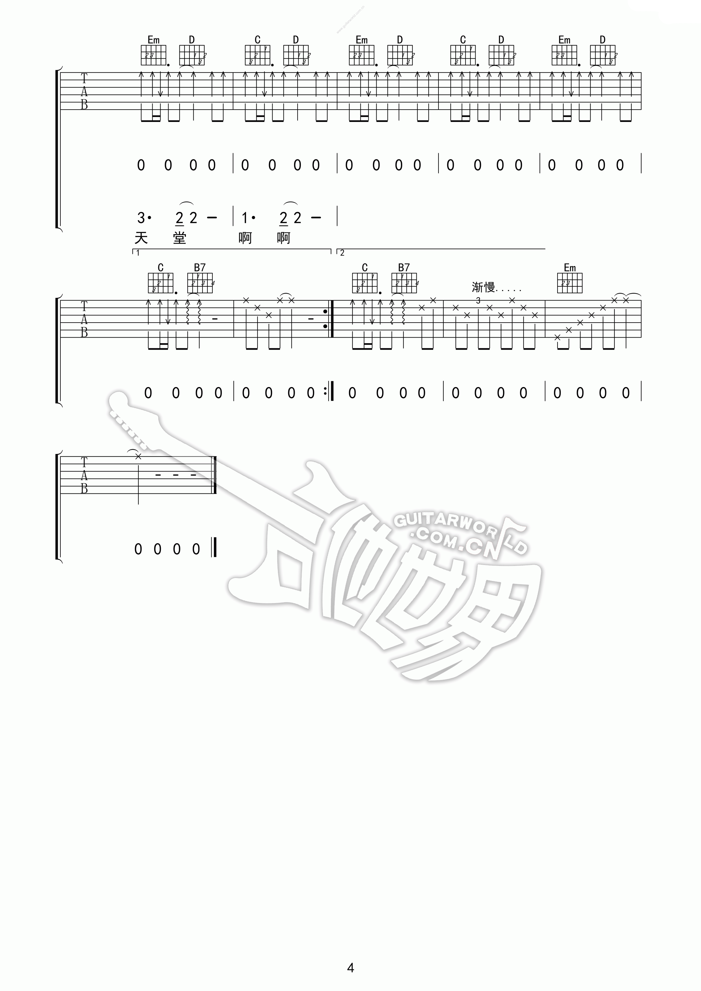 齐秦《火柴天堂》吉他谱,隋毅飛扬编配出品,共有4张高清图谱。