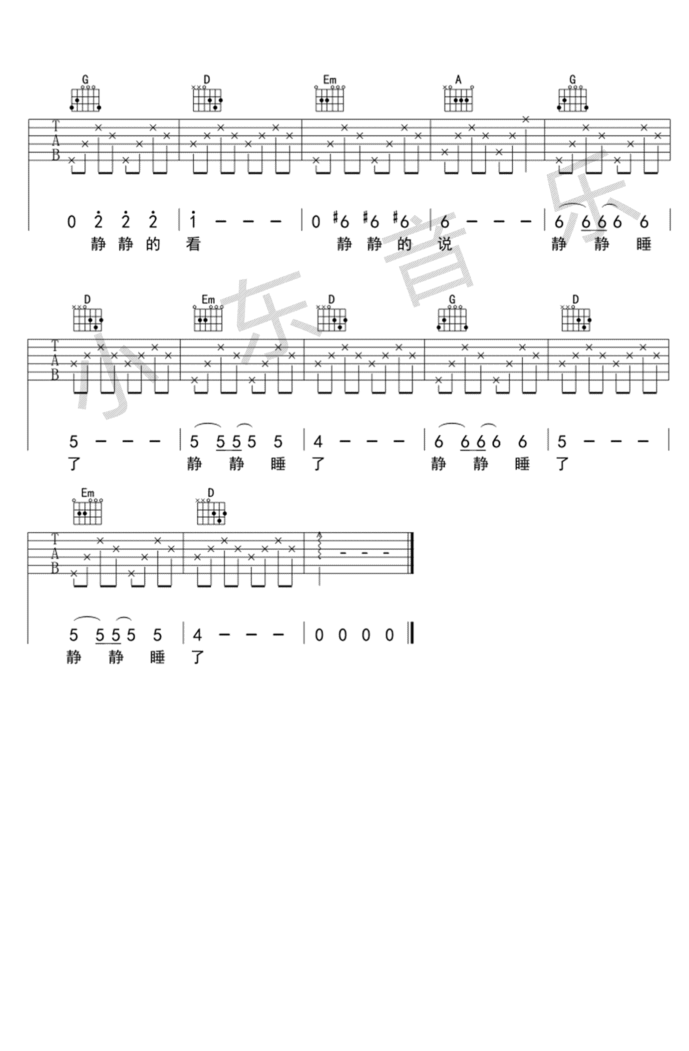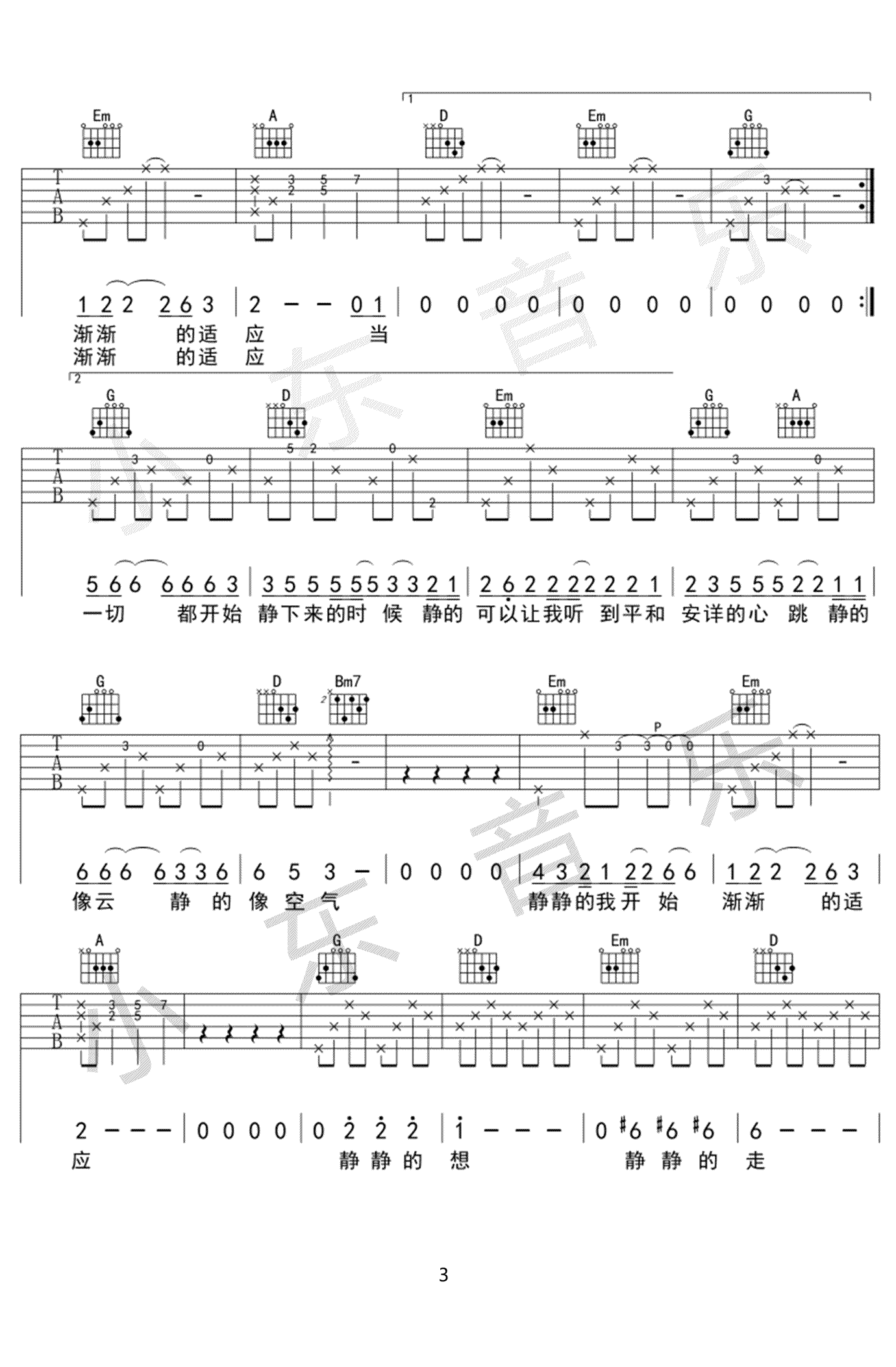 赵雷《静下来》吉他谱_吉他弹唱谱_小东音乐编配
