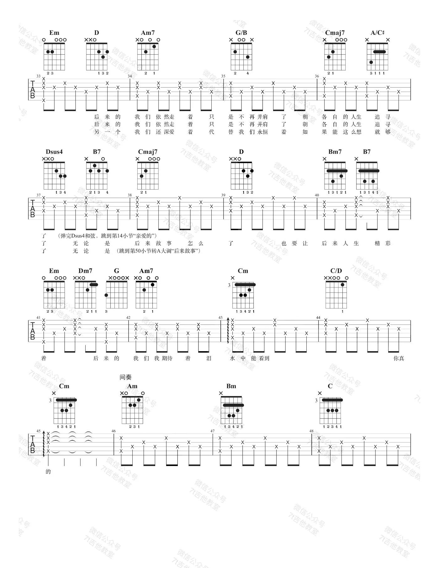 五月天《后来的我们》吉他谱_吉他弹唱谱_7T吉他教室编配