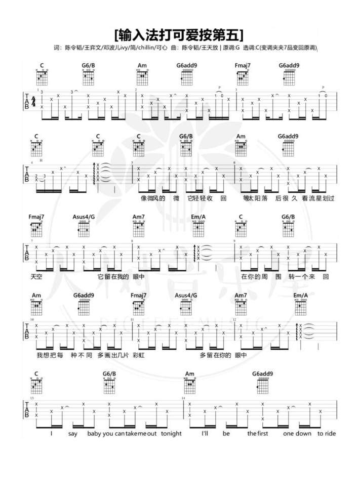 米卡/鞠婧祎《输入法打可爱按第五》吉他谱_吉他弹唱谱