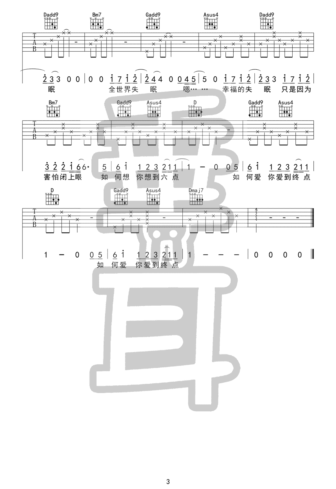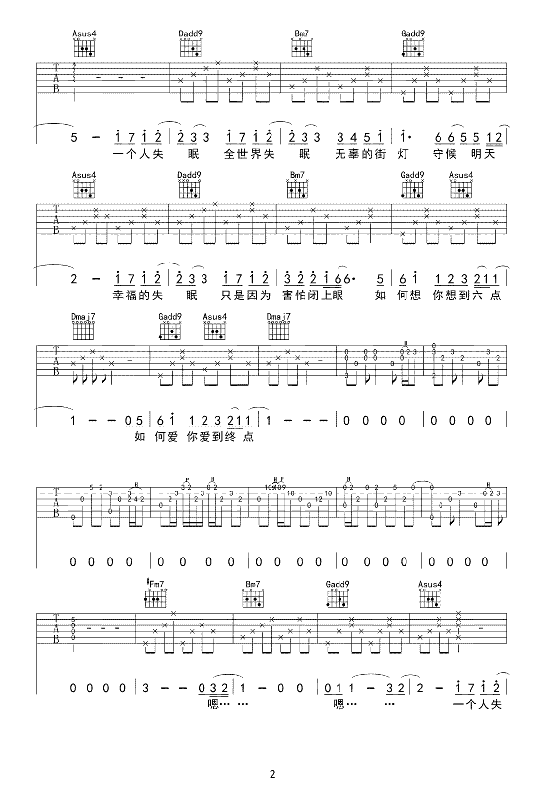 - 陈奕迅《全世界失眠》吉他谱_吉他弹唱谱