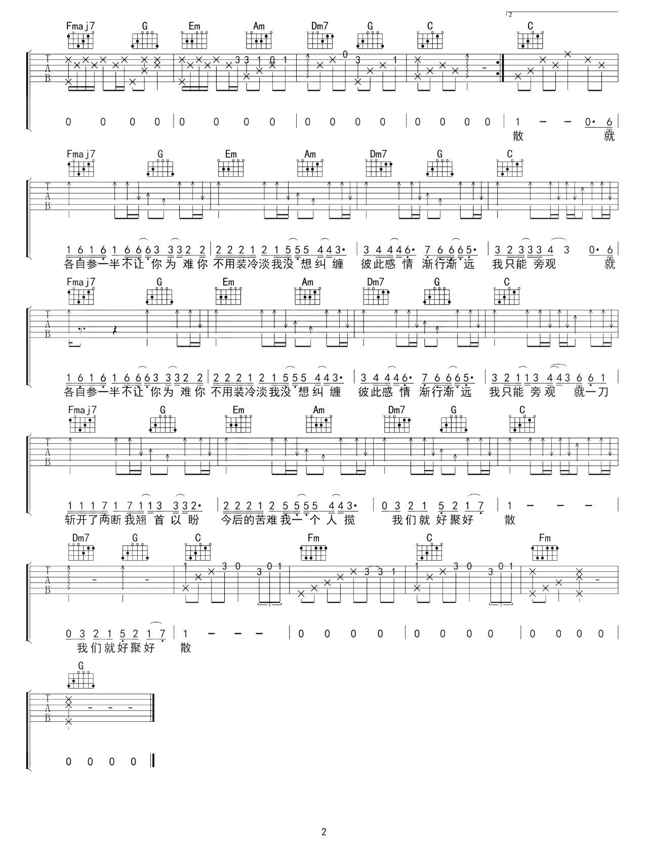 薛之谦《离岸》吉他谱,吴先生TAB编配出品,共有2张高清图谱,免翻页排版设计。