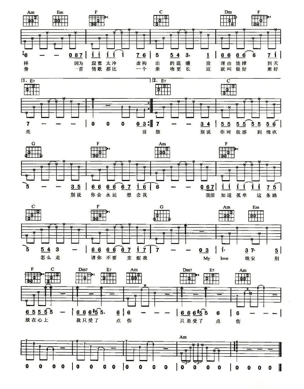 - 阿桑《受了点伤》吉他谱 C调六线谱