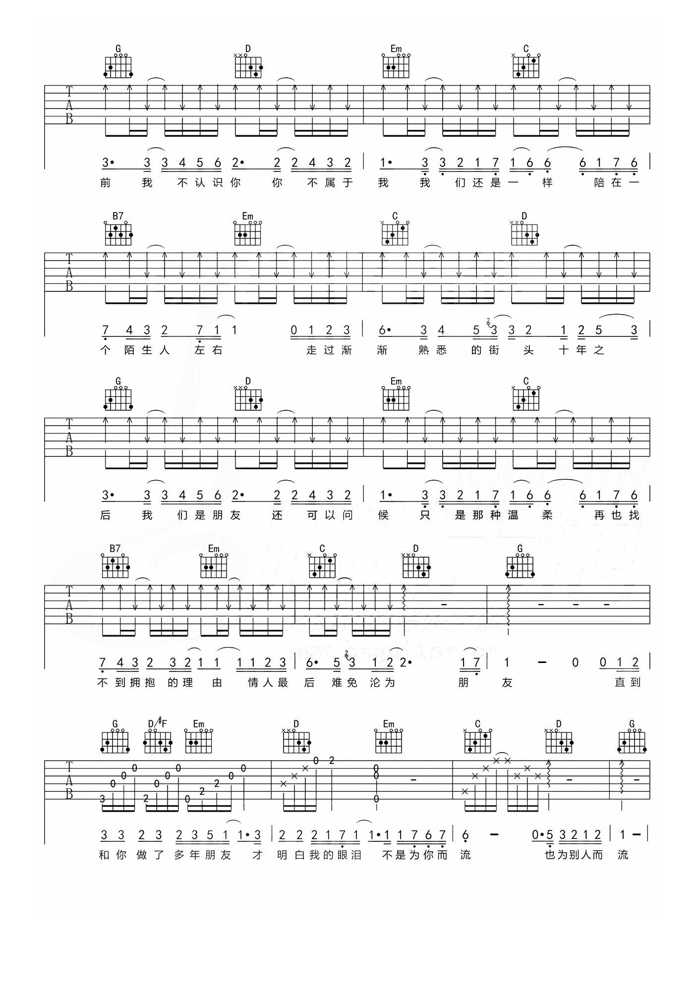 - 陈奕迅《对不起谢谢》吉他谱_吉他弹唱谱_YYZJ编配