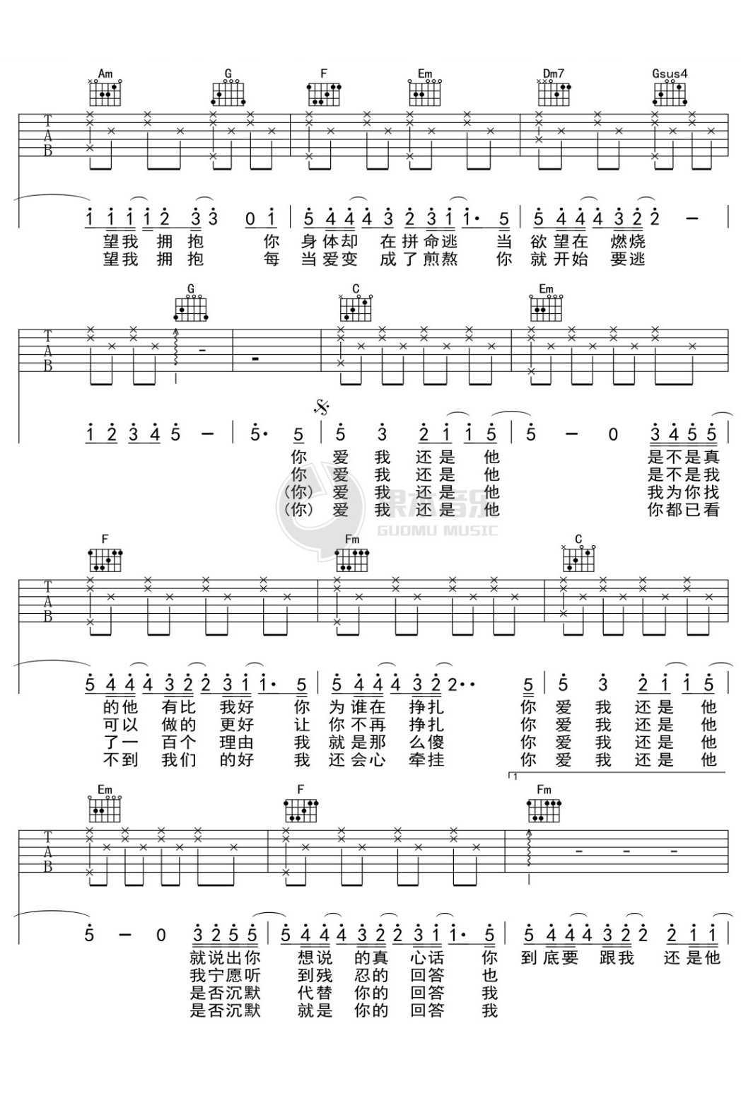 陶喆《爱我还是他》吉他谱_吉他弹唱谱_果木音乐编配