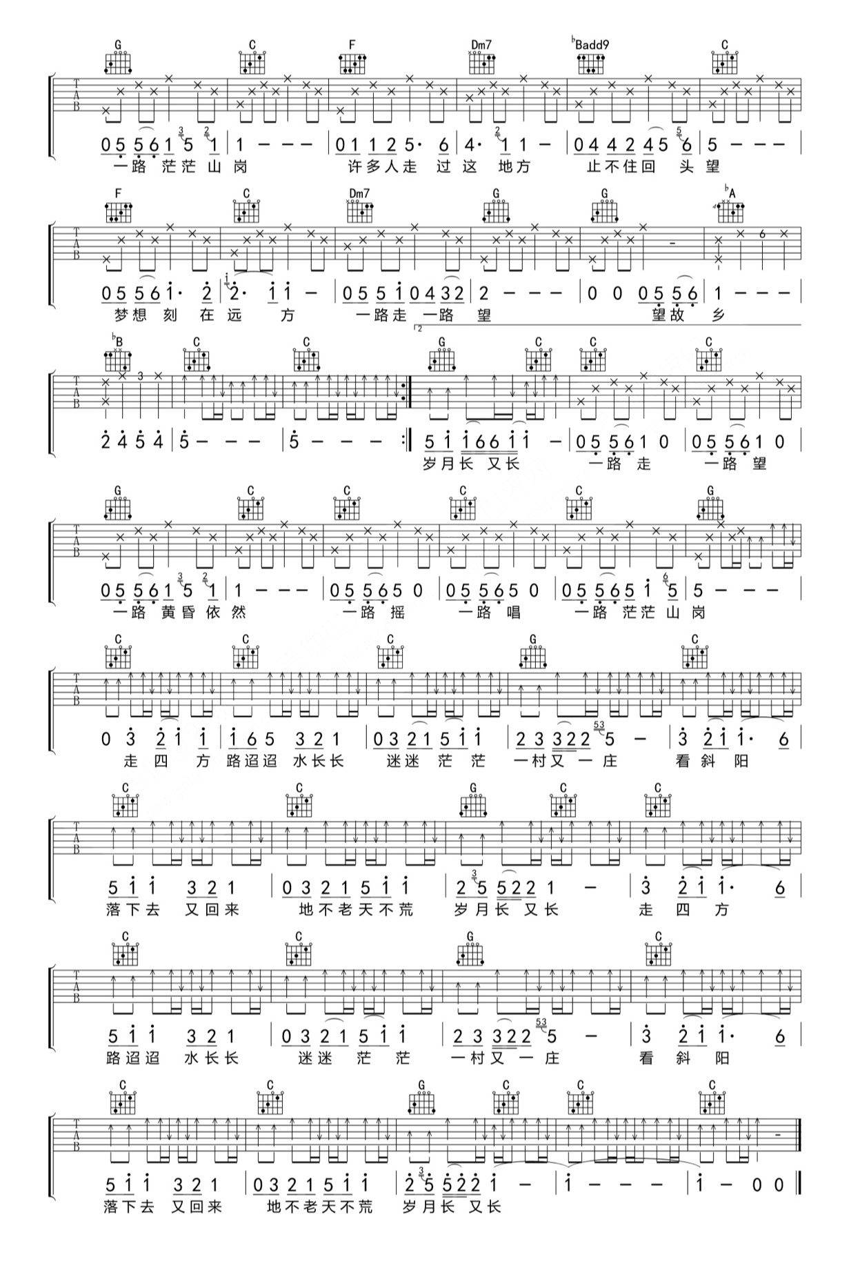 韩磊《走四方》吉他谱,共有2张高清图谱,免翻页排版设计。
