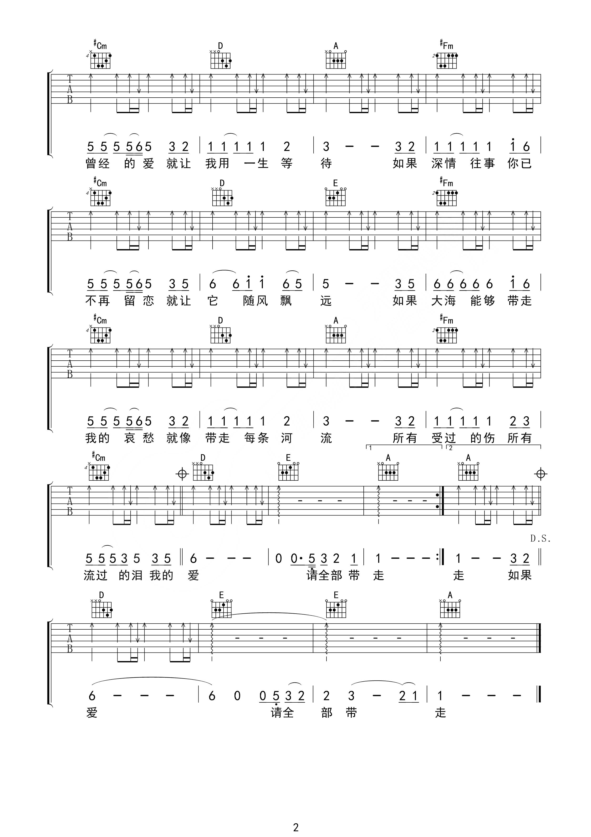 张雨生《大海》吉他谱_吉他弹唱谱_无限延音编配