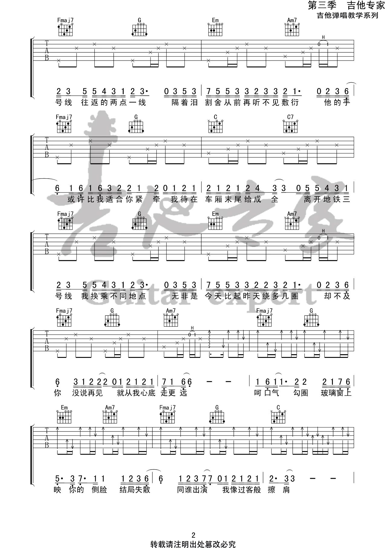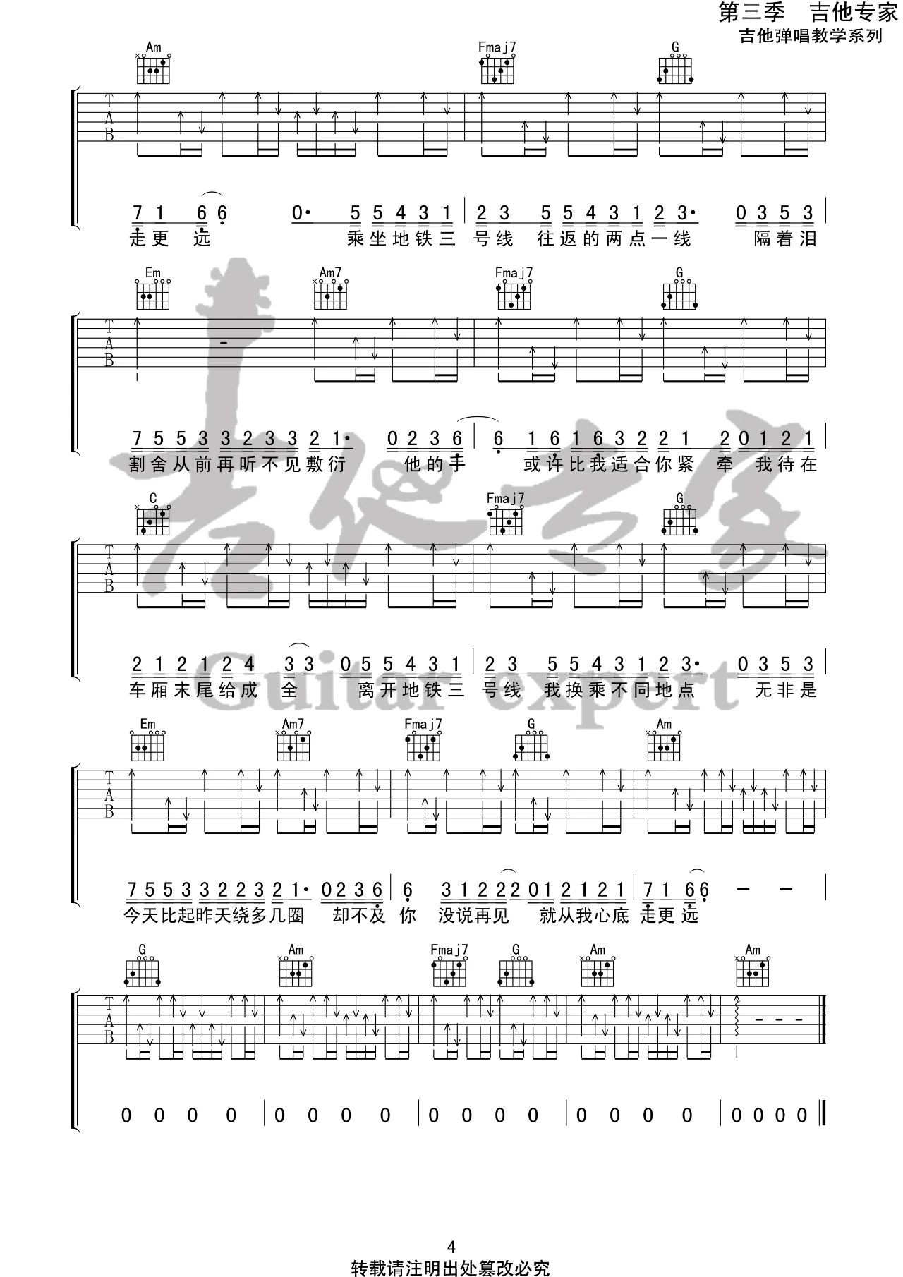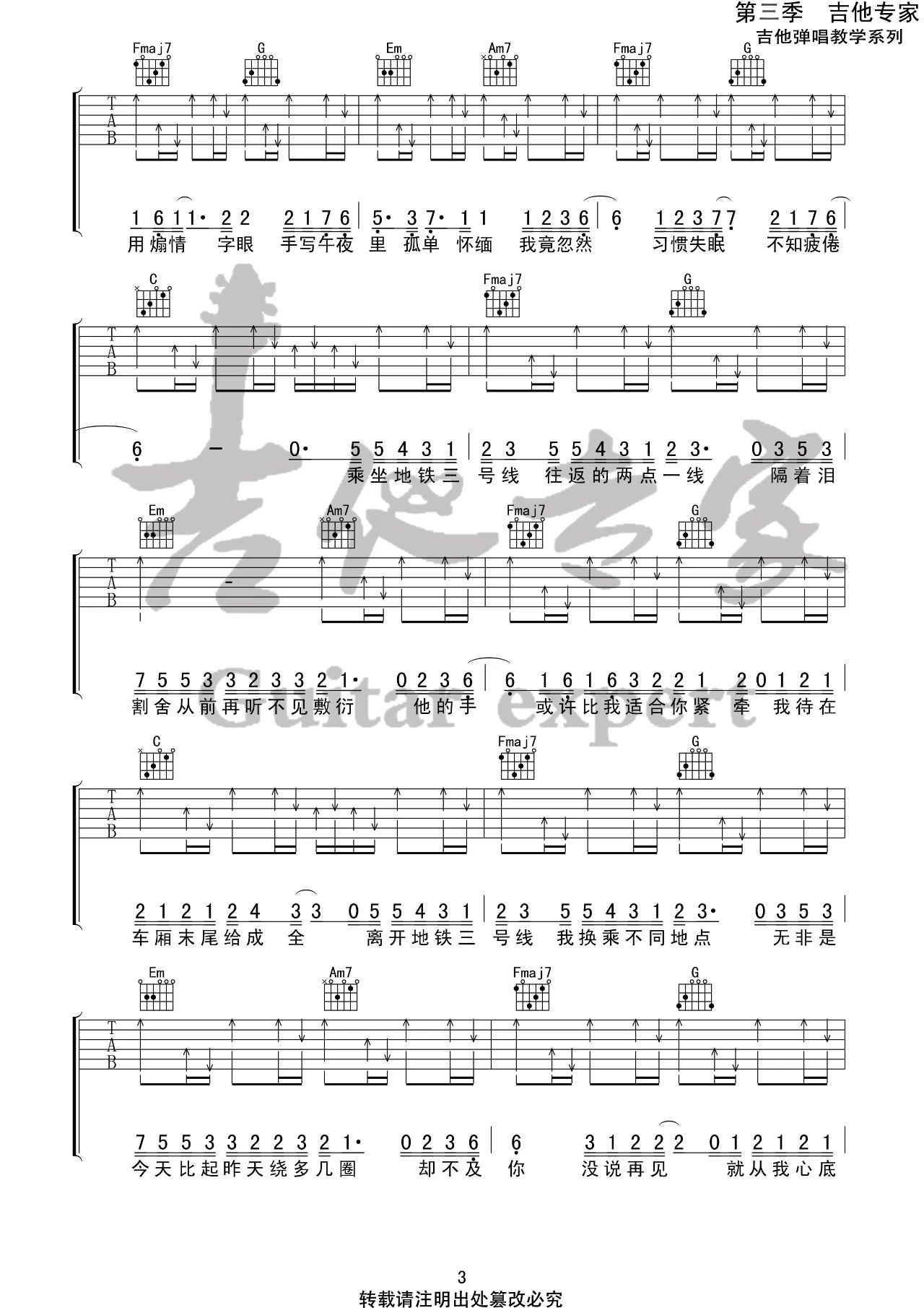刘大壮《三号线》吉他谱_吉他弹唱谱_吉他专家编配