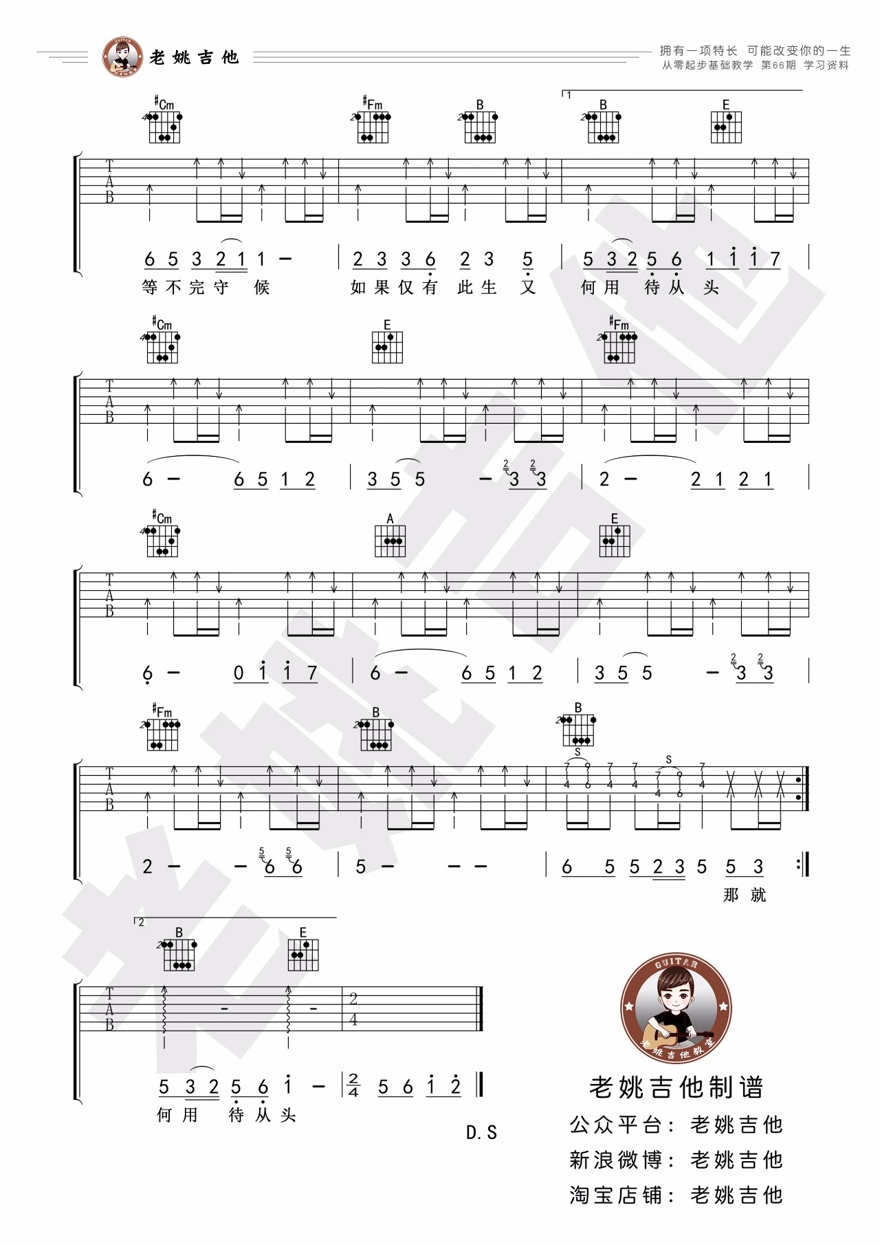 伍佰《突然的自我》吉他谱,老姚吉他编配出品,共有3张高清图谱。
