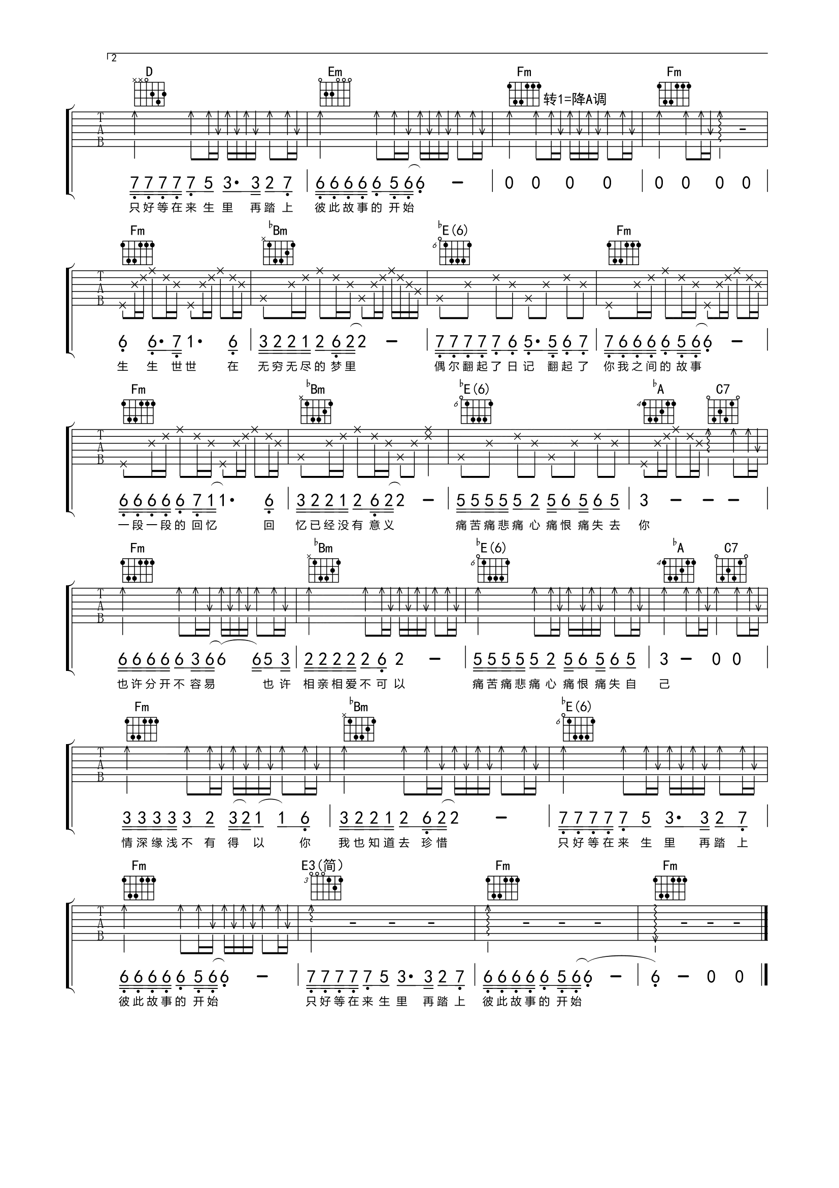 刘德华《来生缘》吉他谱,共有2张高清图谱,免翻页排版设计。