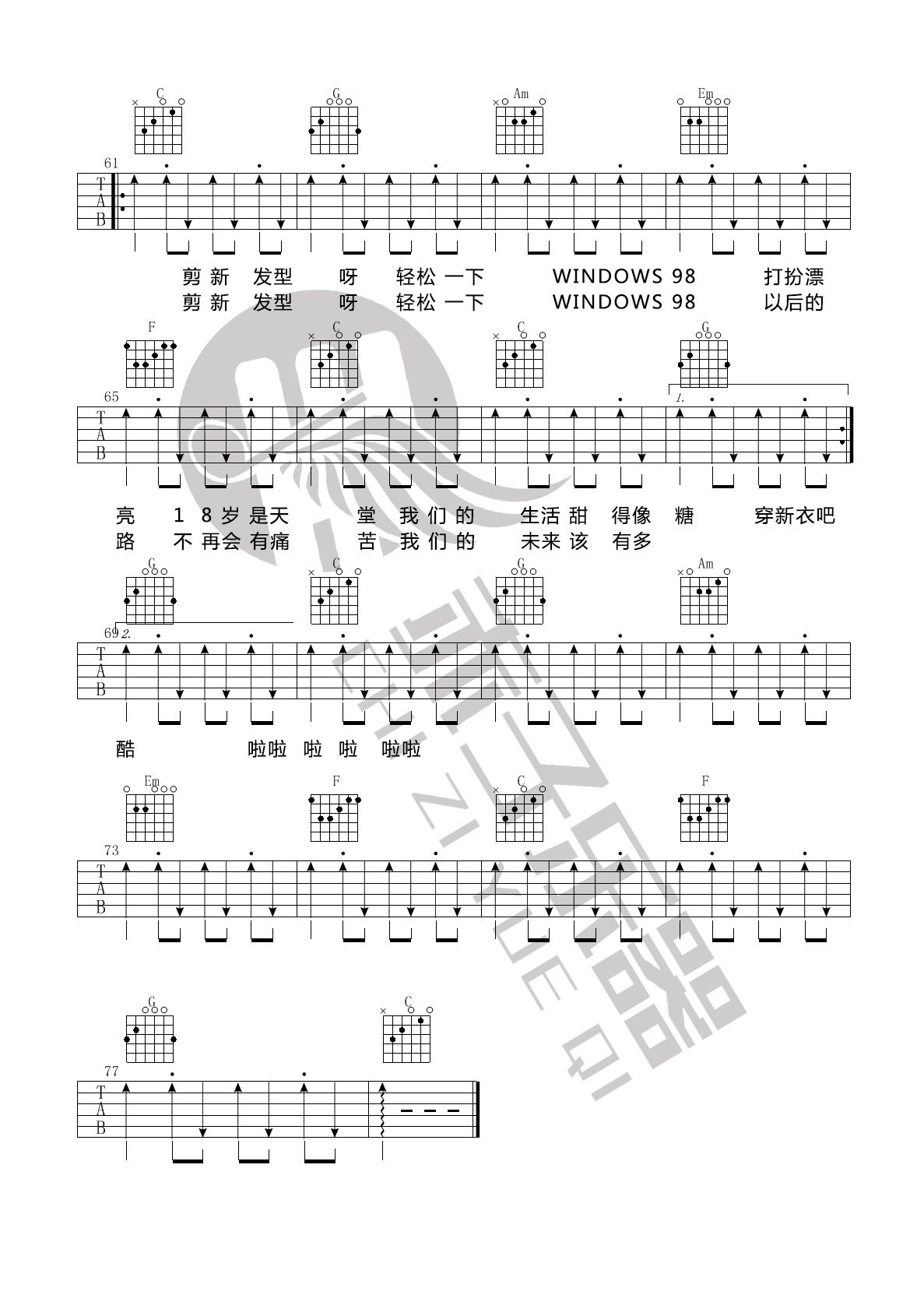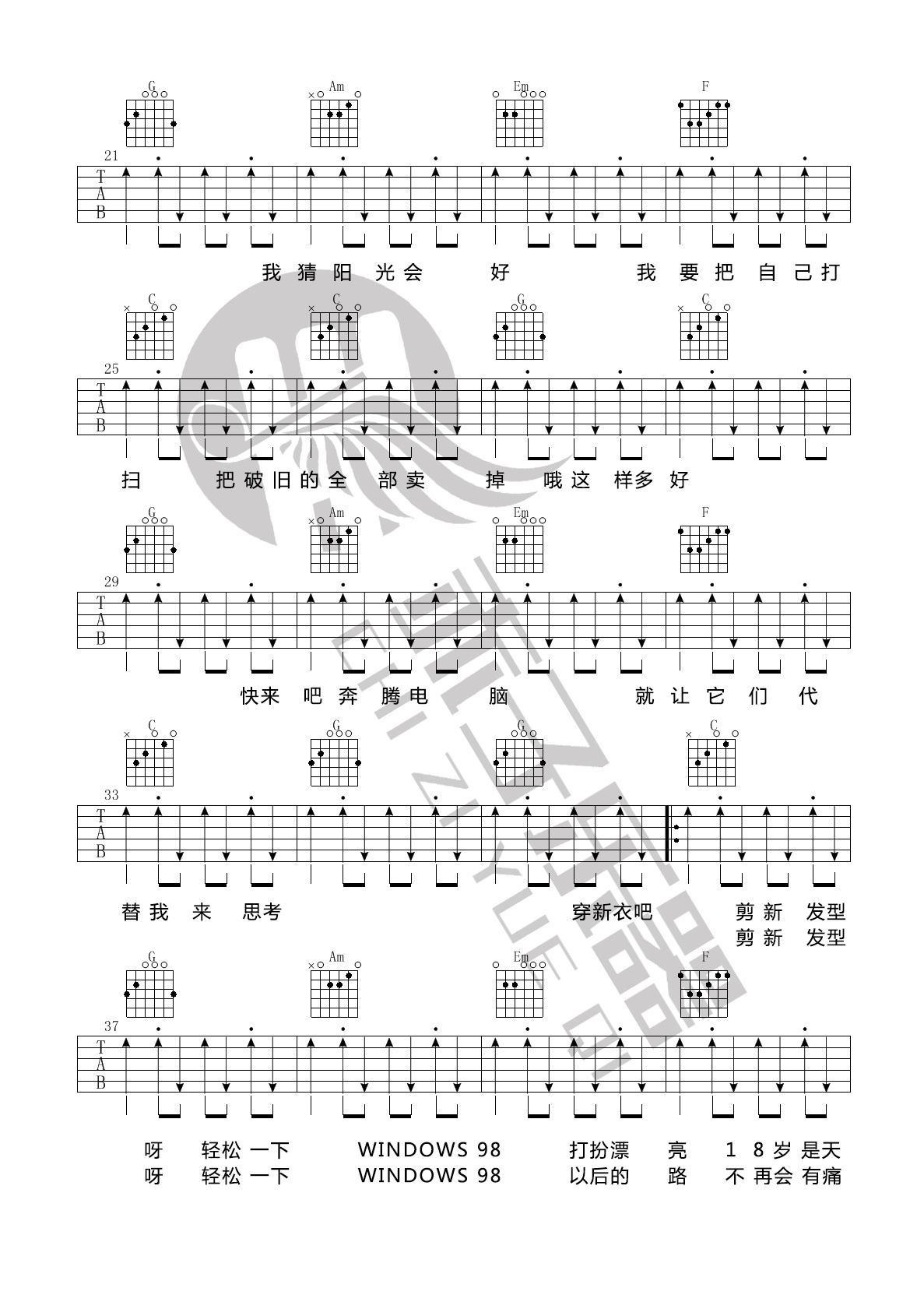 - 朴树《清白之年》吉他谱_吉他弹唱谱_小磊吉他编配