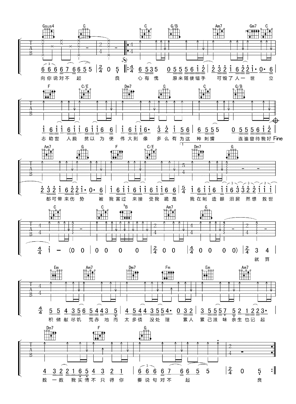 - 陈奕迅《对不起谢谢》吉他谱_吉他弹唱谱_YYZJ编配