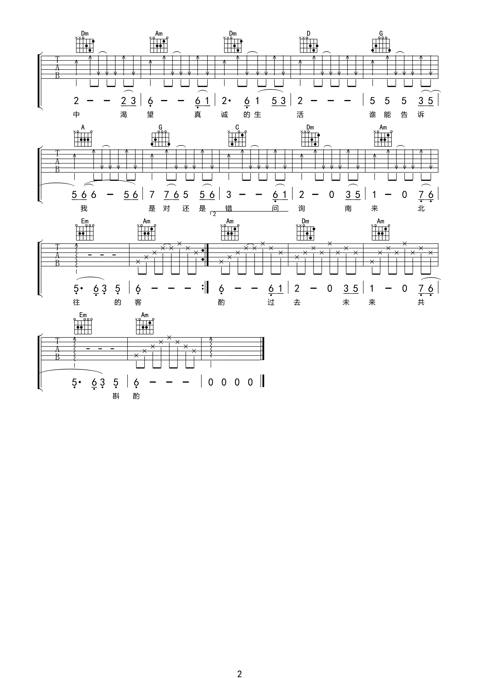 毛阿敏《渴望》吉他谱,共有2张高清图谱,免翻页排版设计。