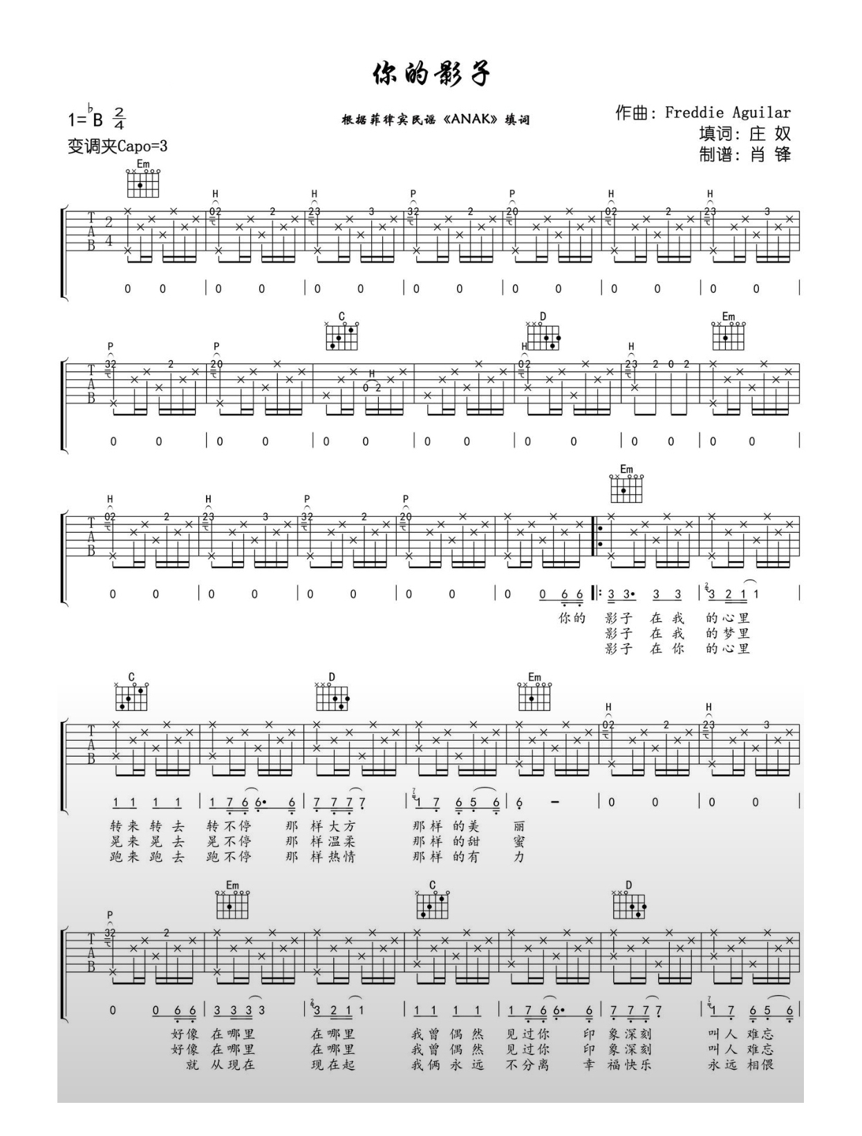 ANAK《你的影子》吉他谱_吉他弹唱谱_肖锋编配