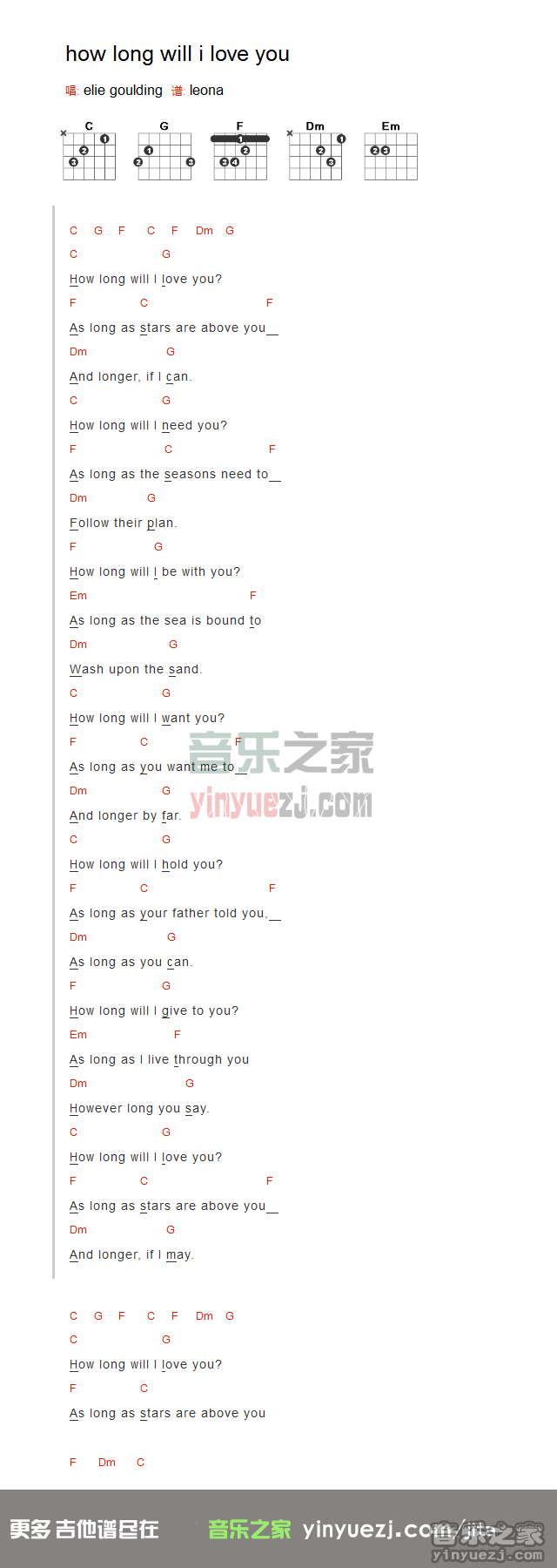 《how long will i love you》吉他谱_吉他弹唱谱