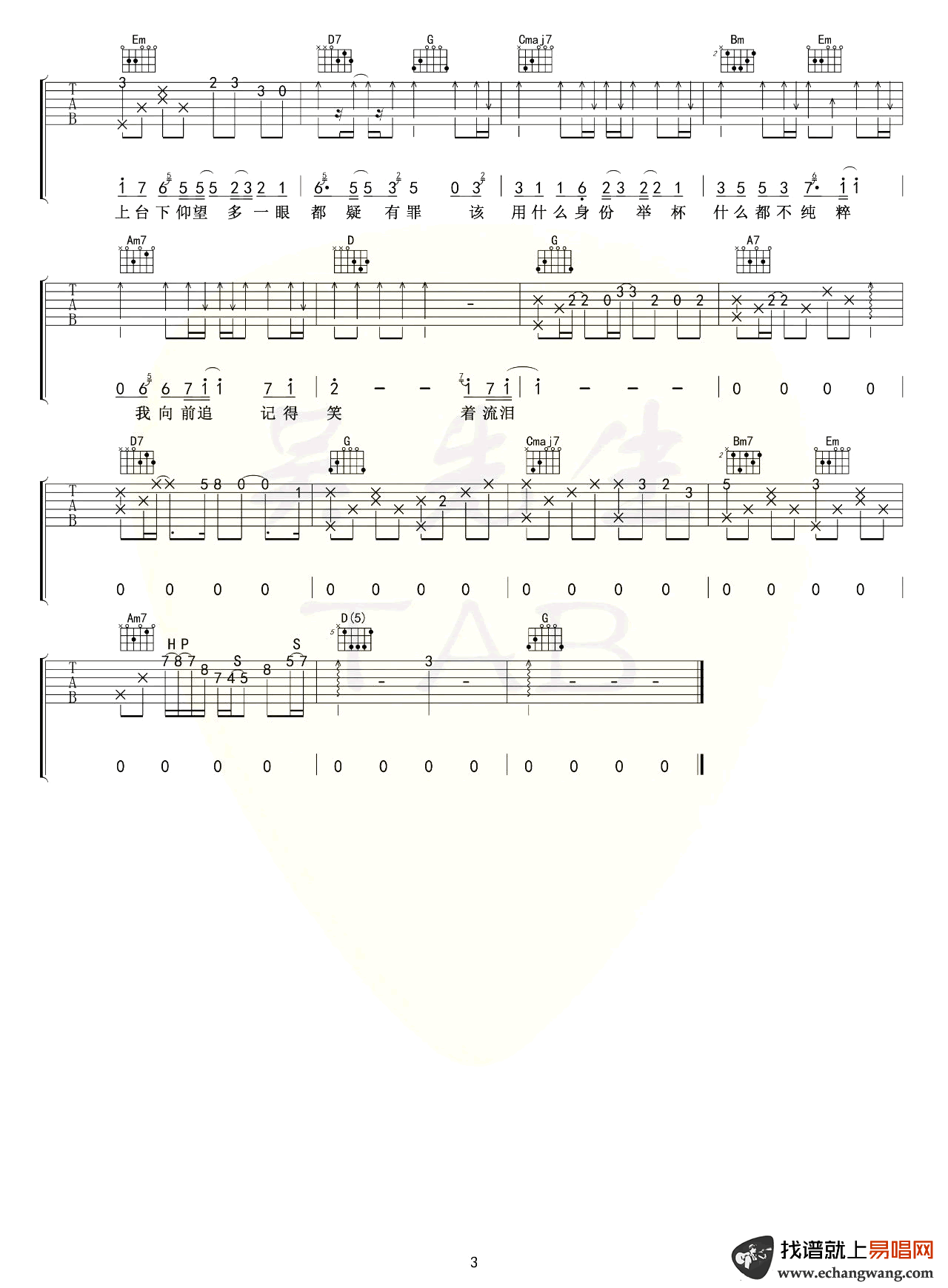 陈亦《鼎沸》吉他谱_吉他弹唱谱_吴先生TAB编配