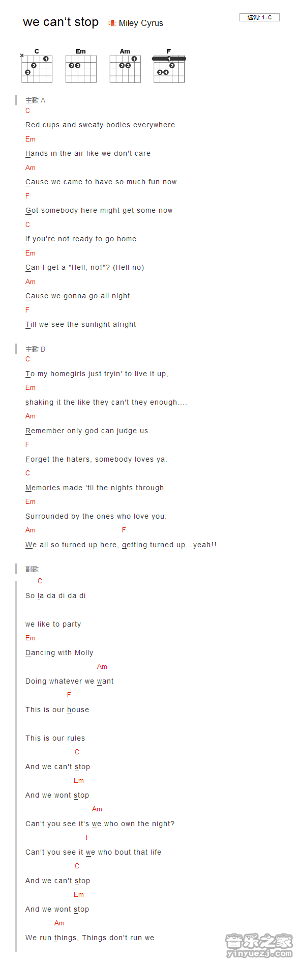 《wecan'tstop》吉他谱,共有1张高清图谱,免翻页排版设计。